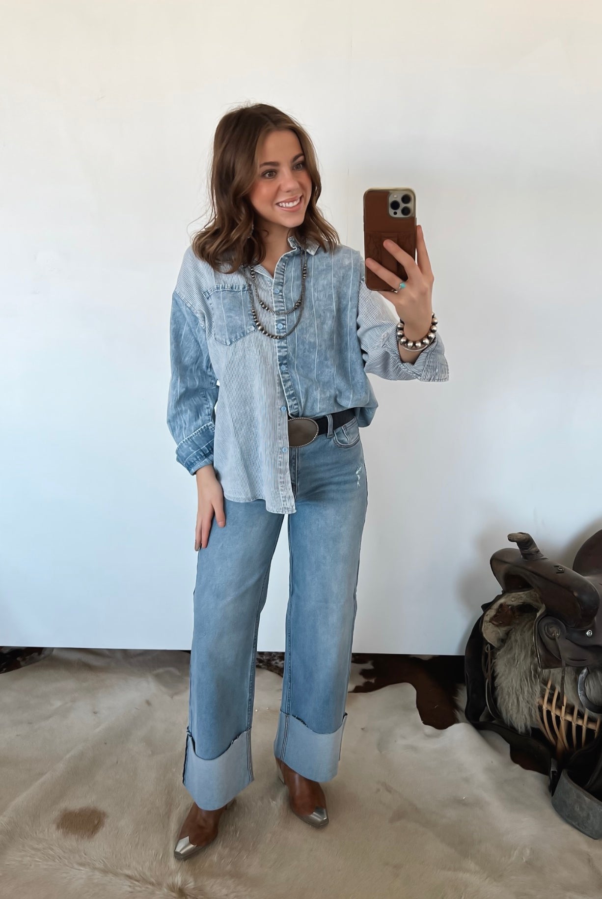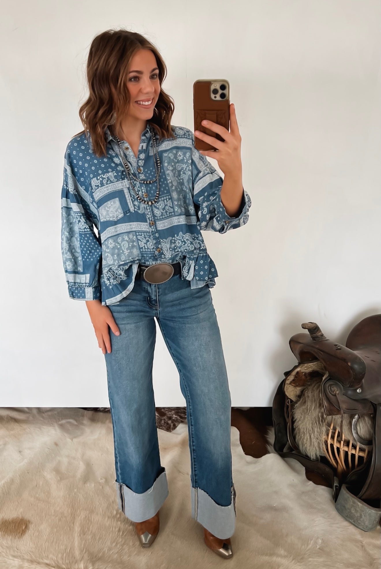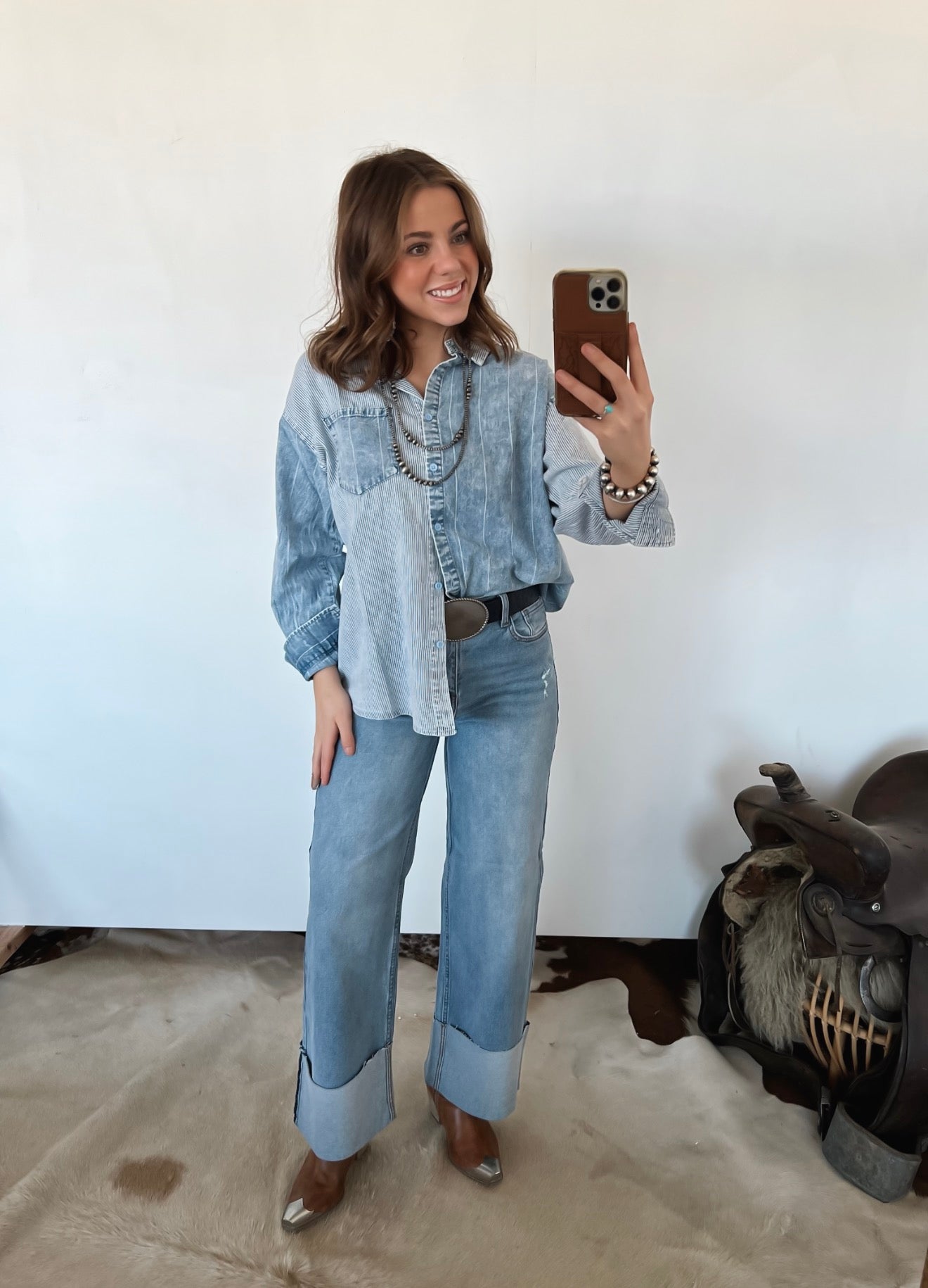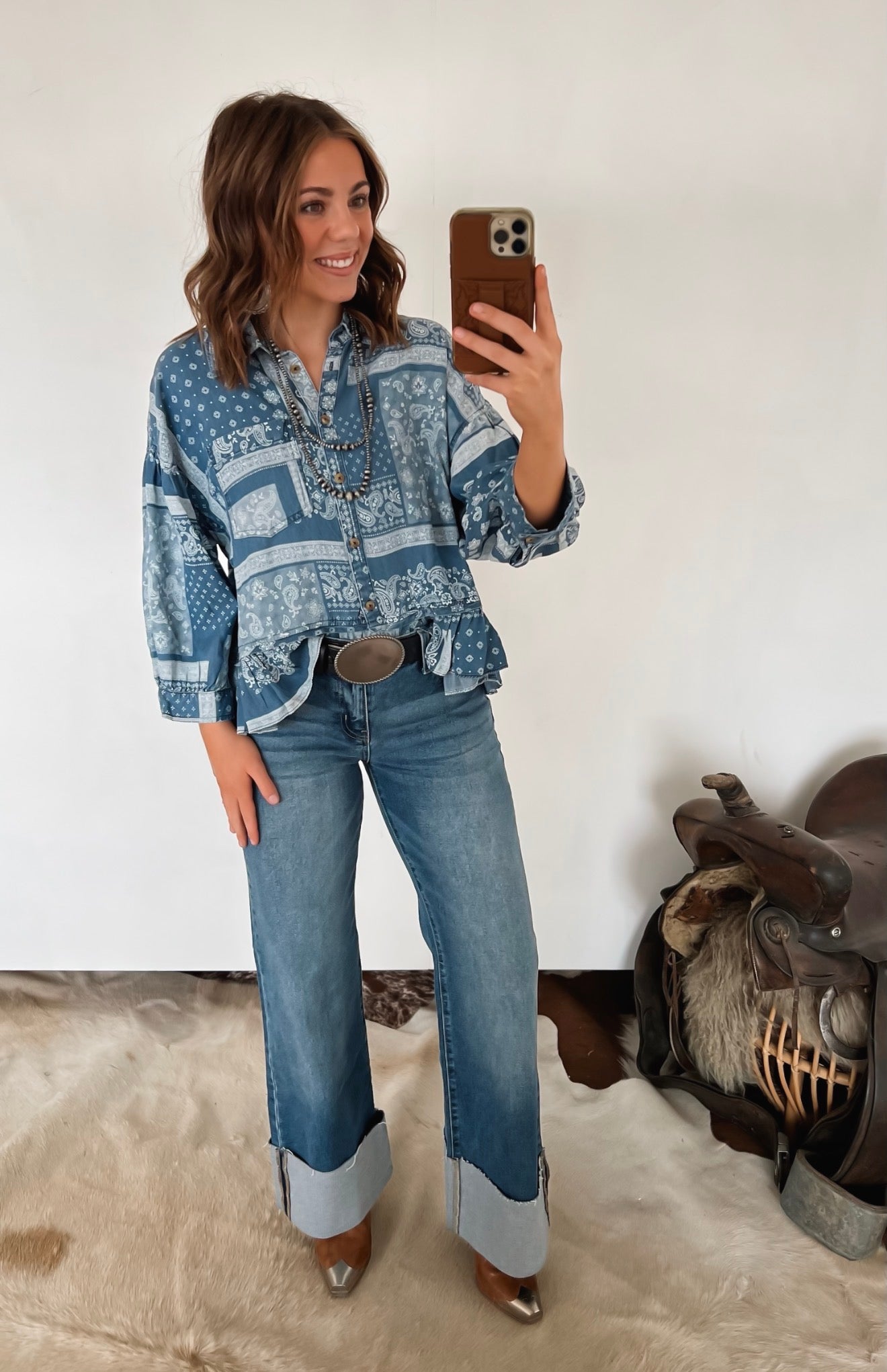 Black Canyon Wide Leg Cuffed Denim (P854)