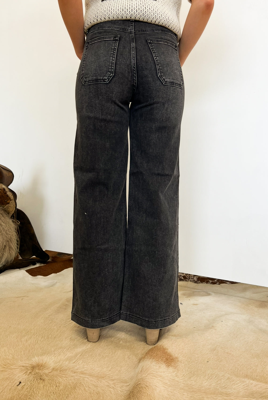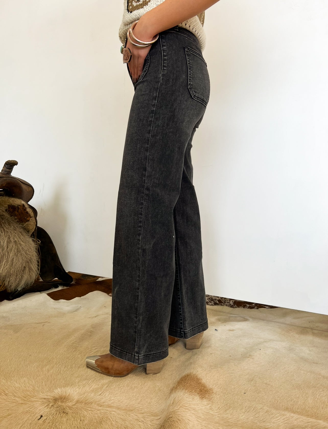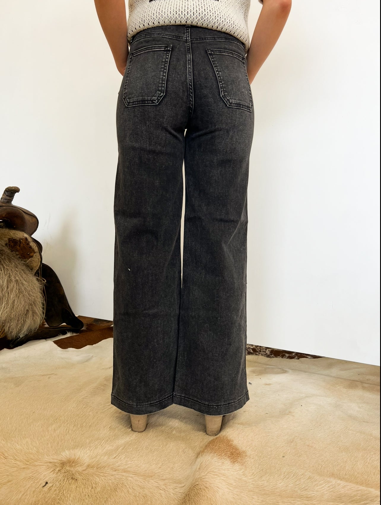 Western High Rise Wide Leg Denim (8158)