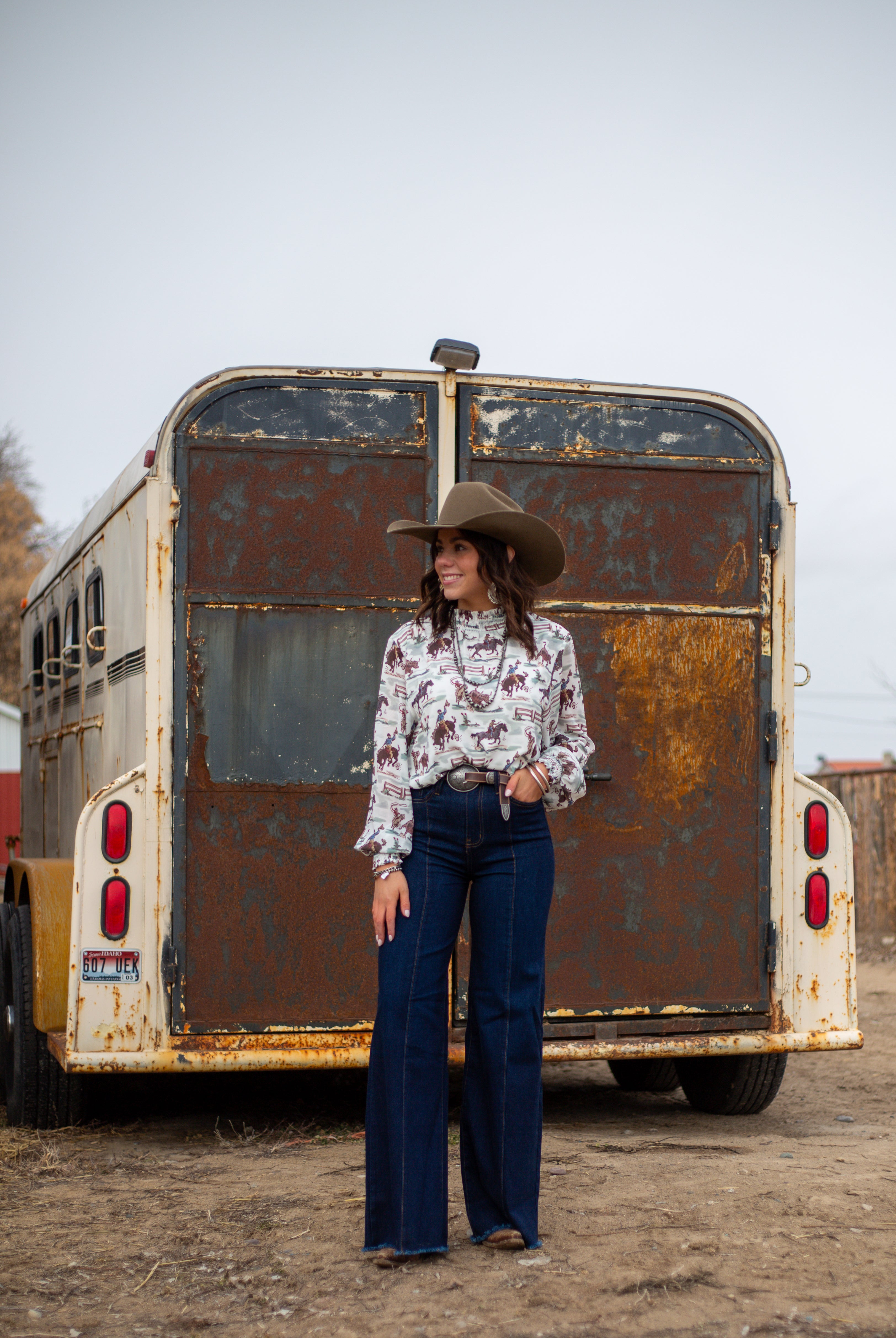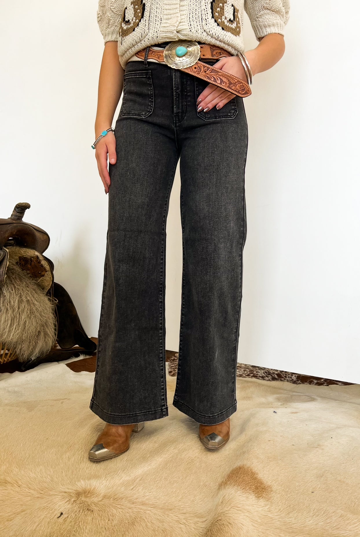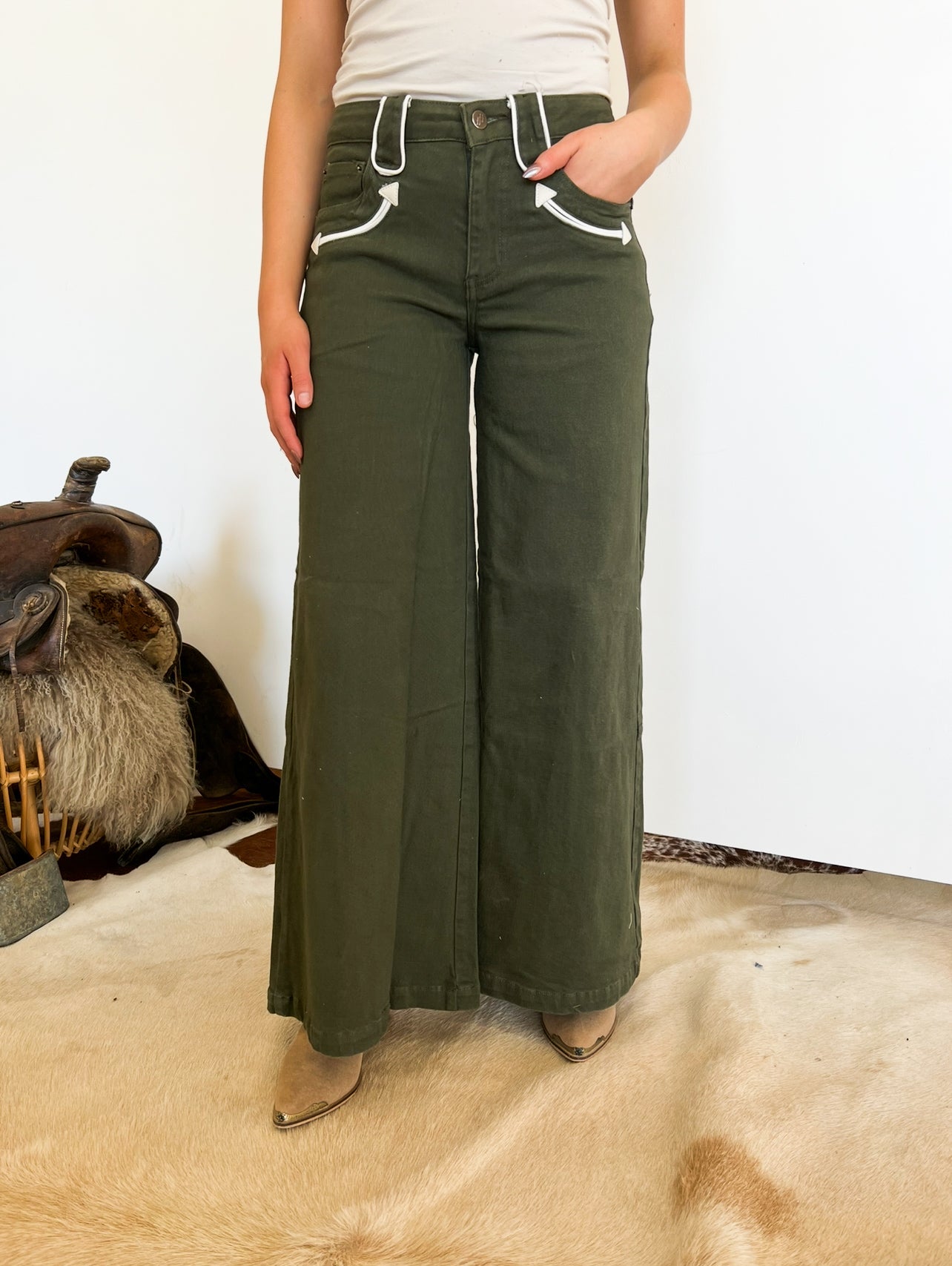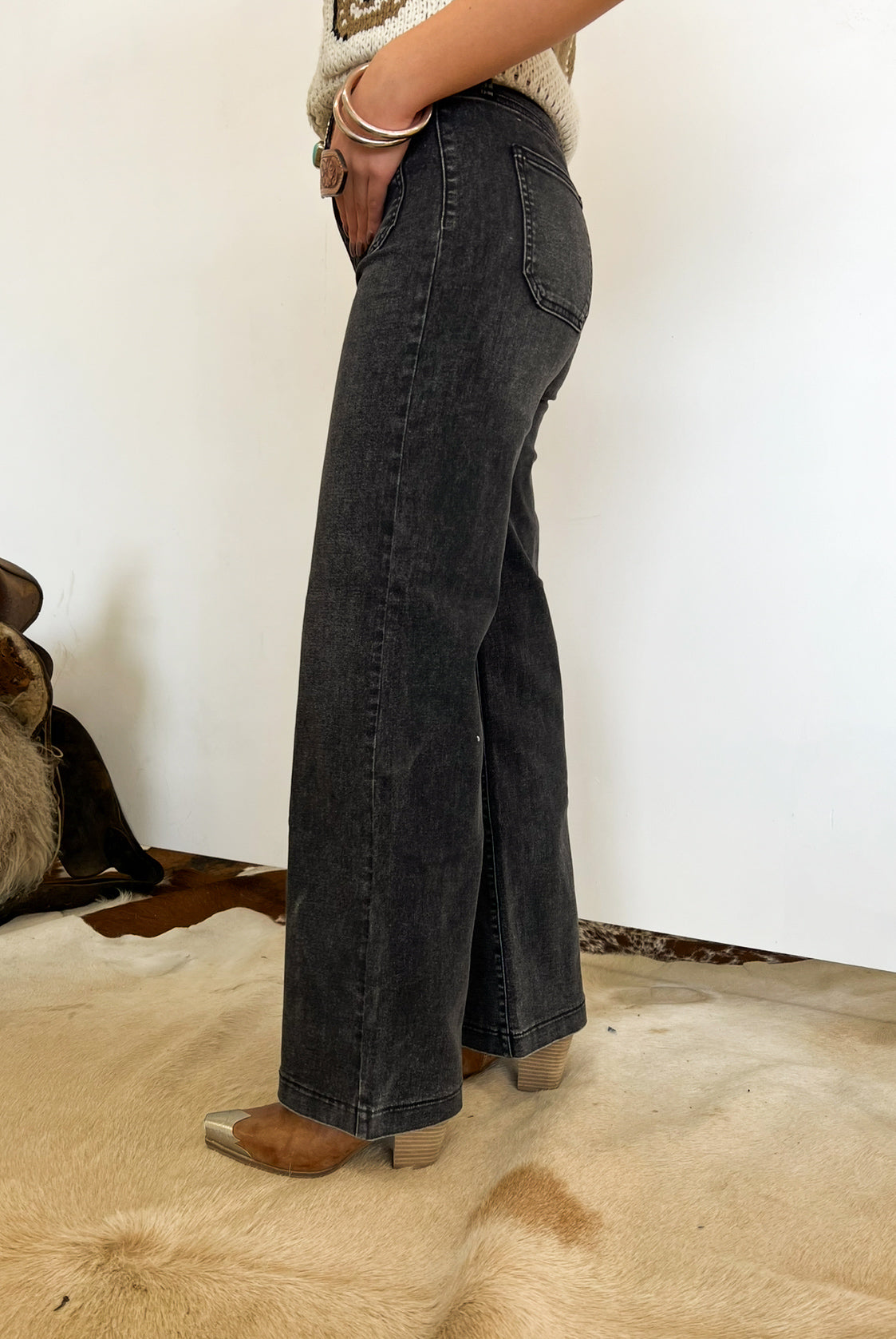 Western High Rise Wide Leg Denim (8158)