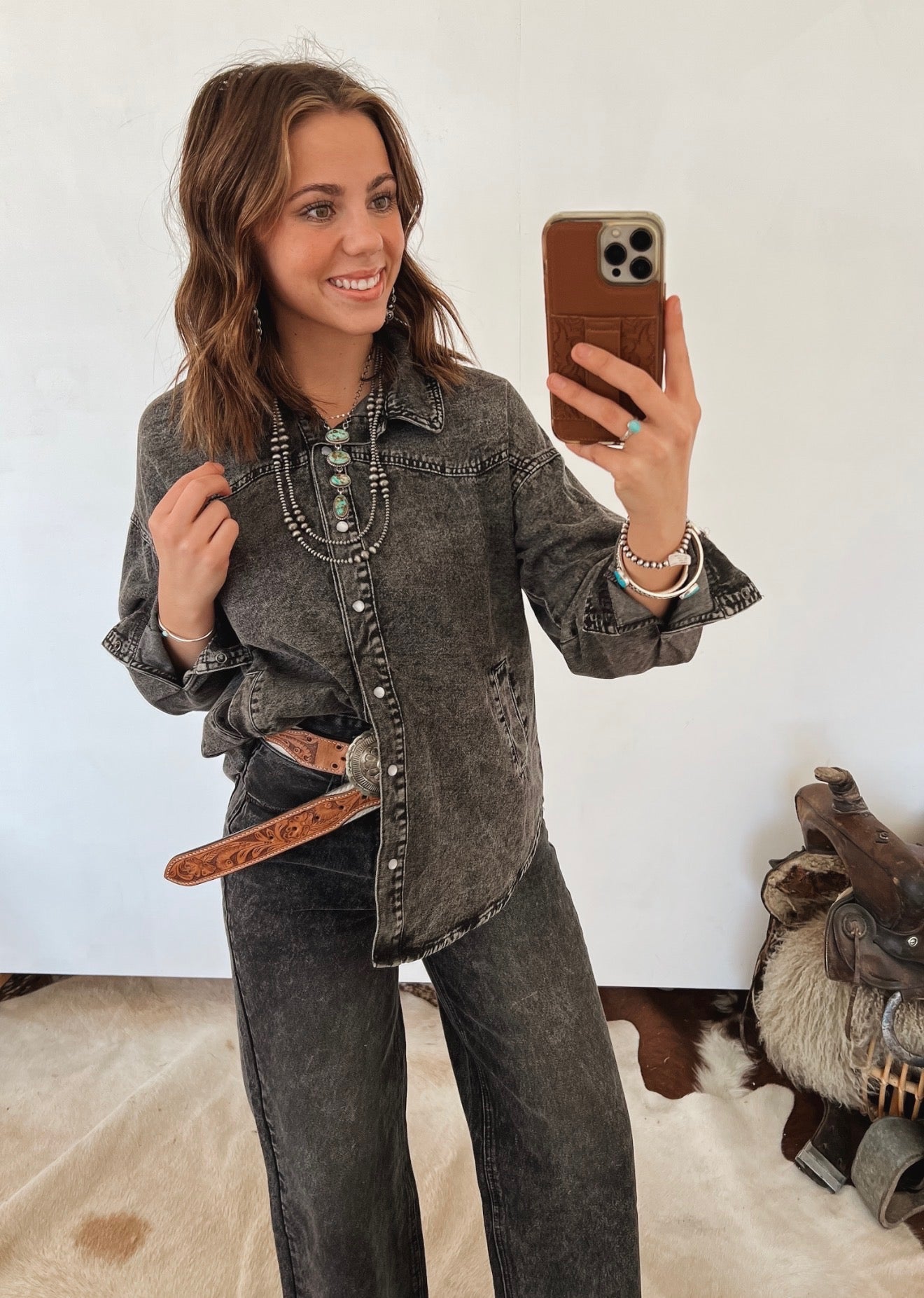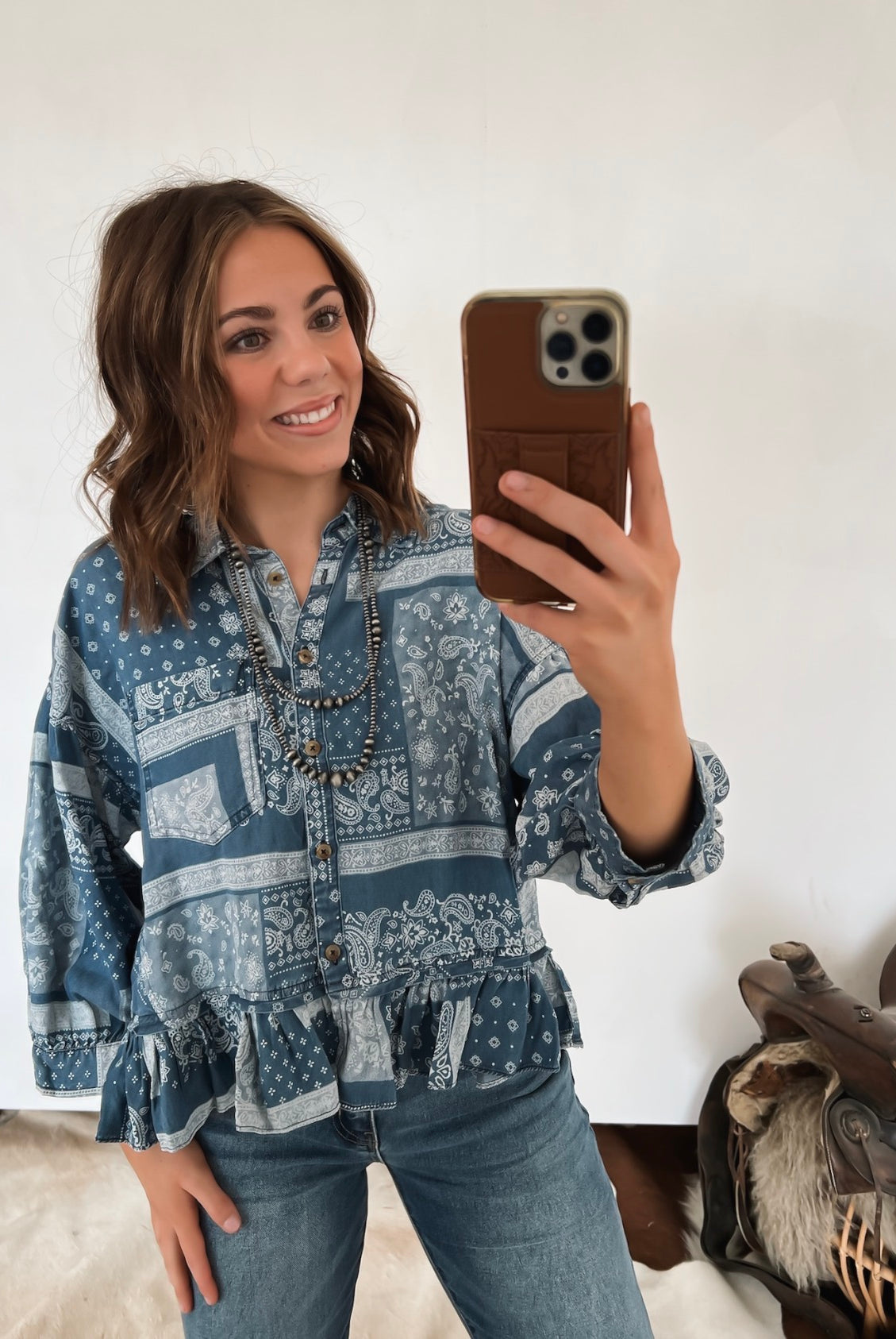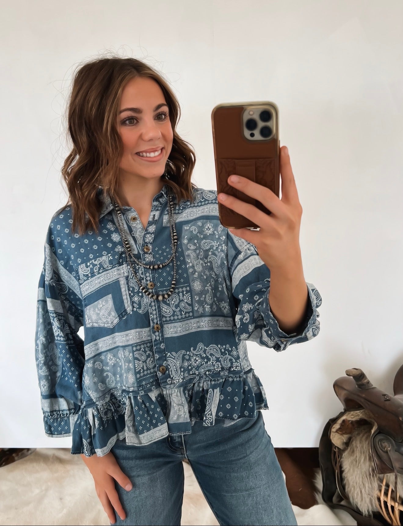 Wildflower Saddle Horse Western Easter Shirt | Long Sleeve Bubble Romper (Cream)