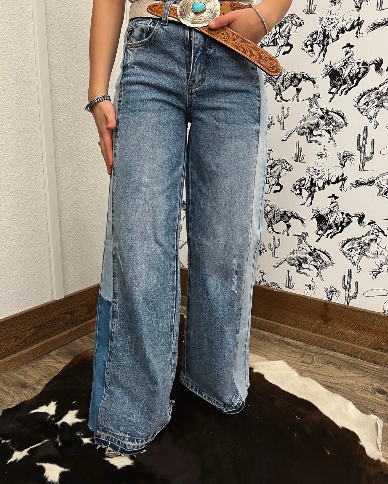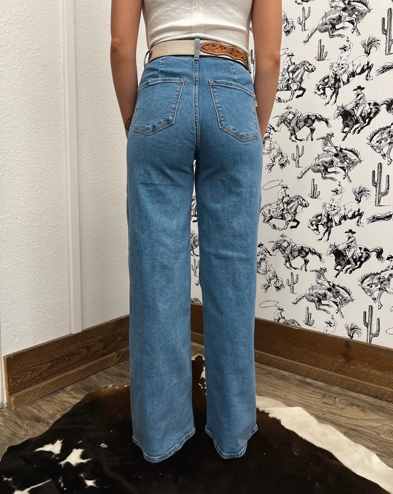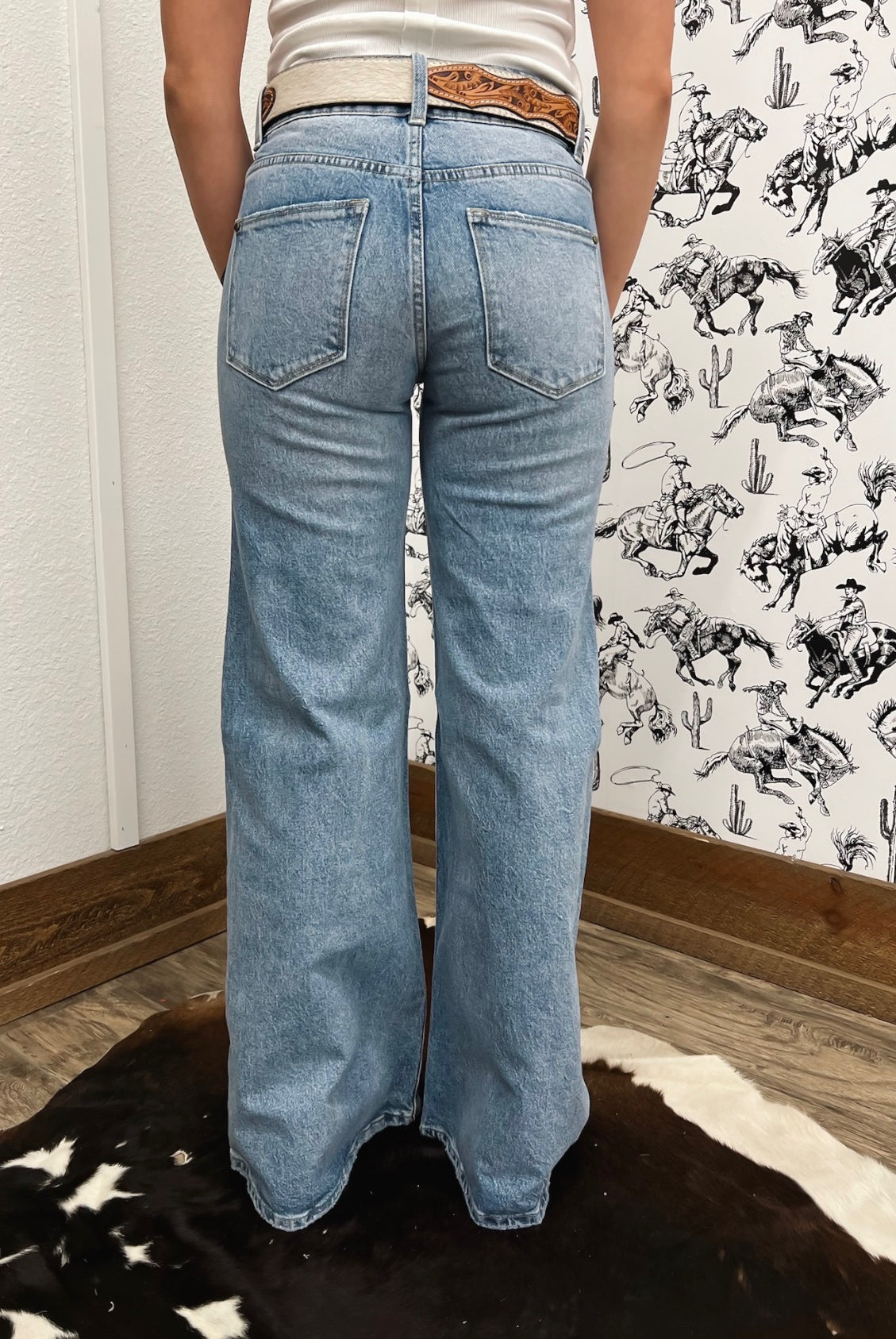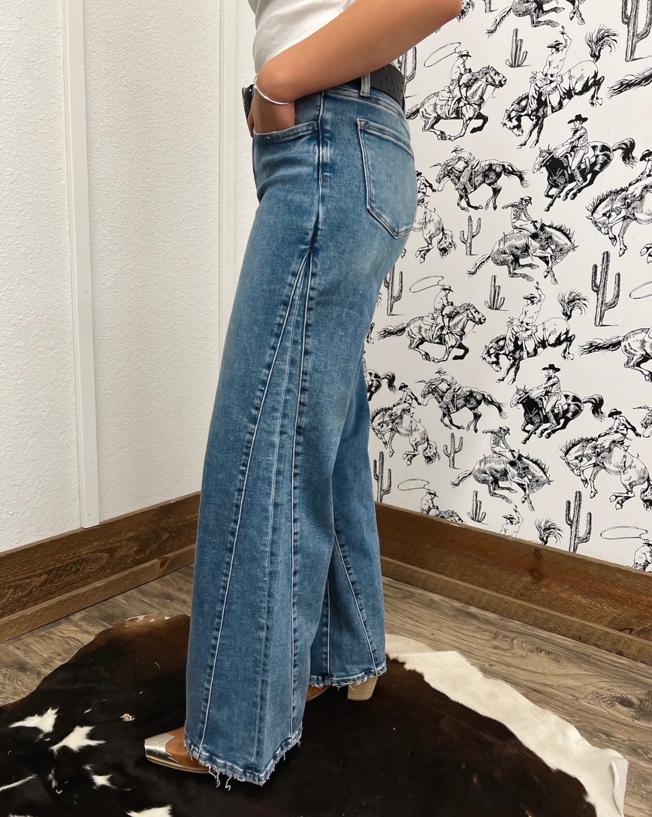 Western Mid Rise Wide Flare Denim