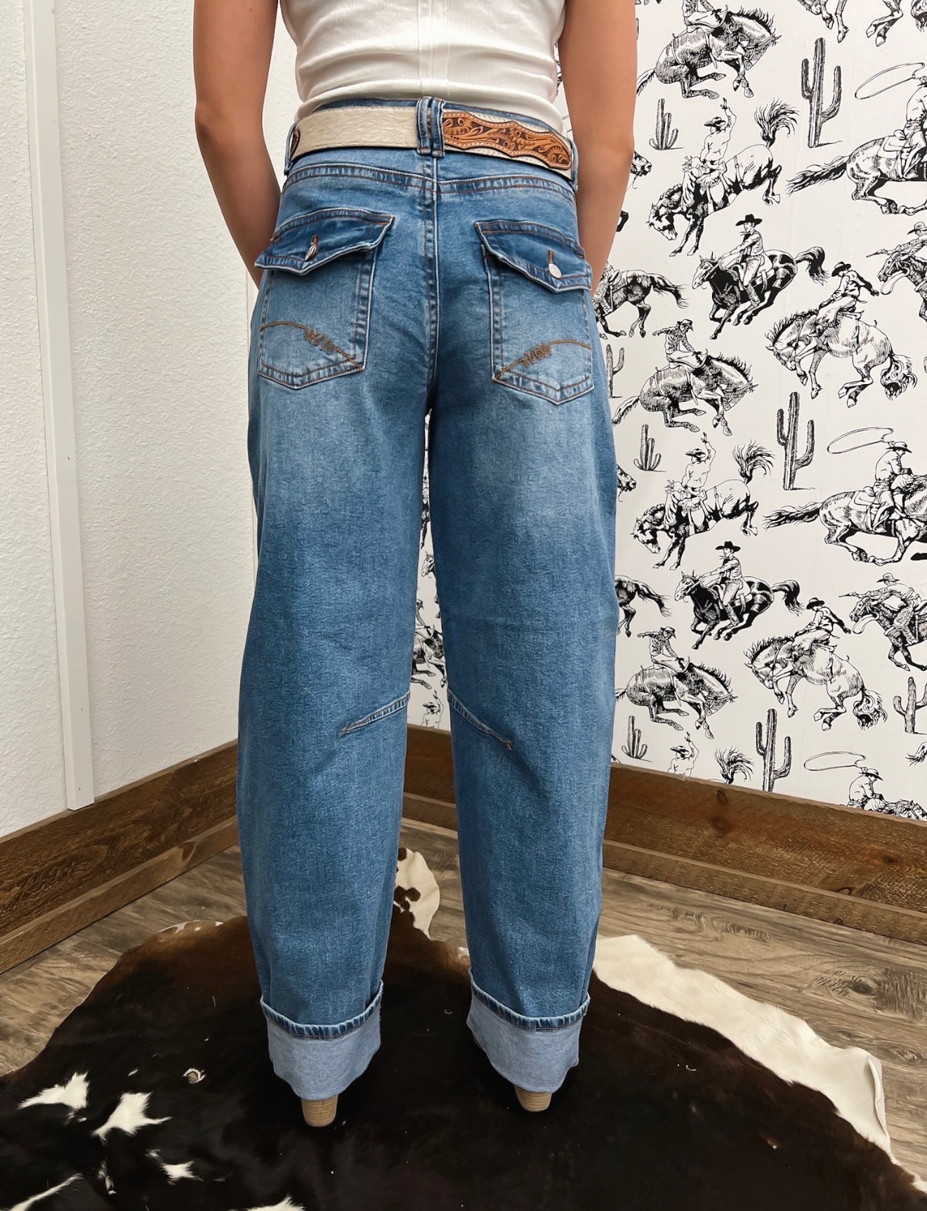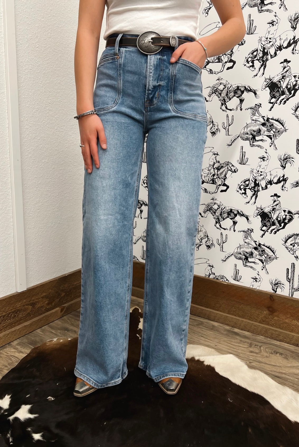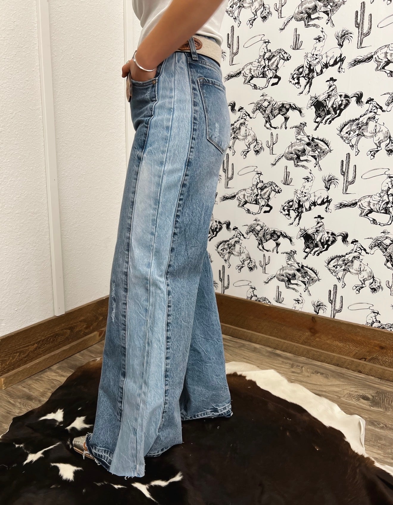 Western Mid Rise Wide Flare Denim