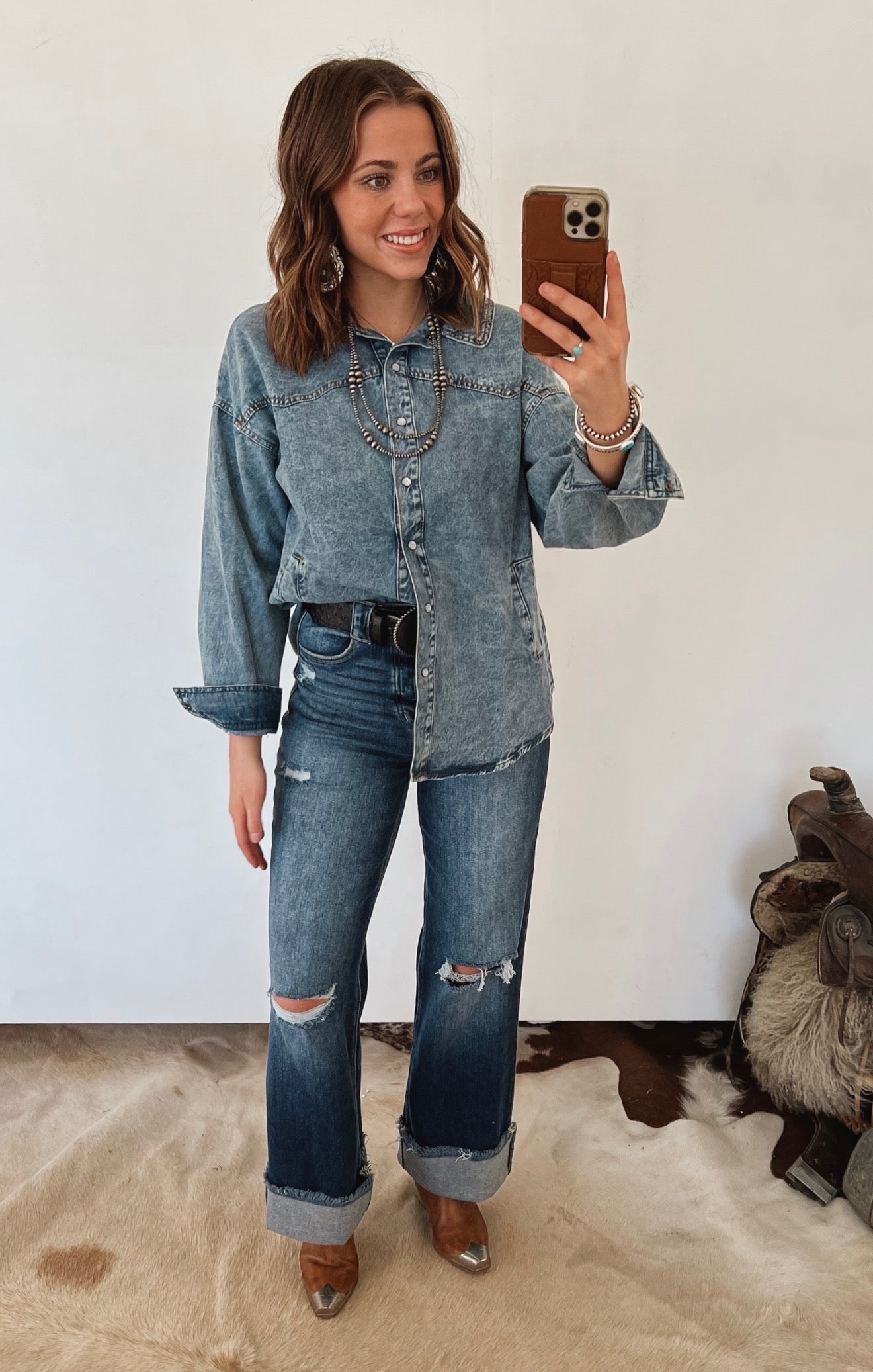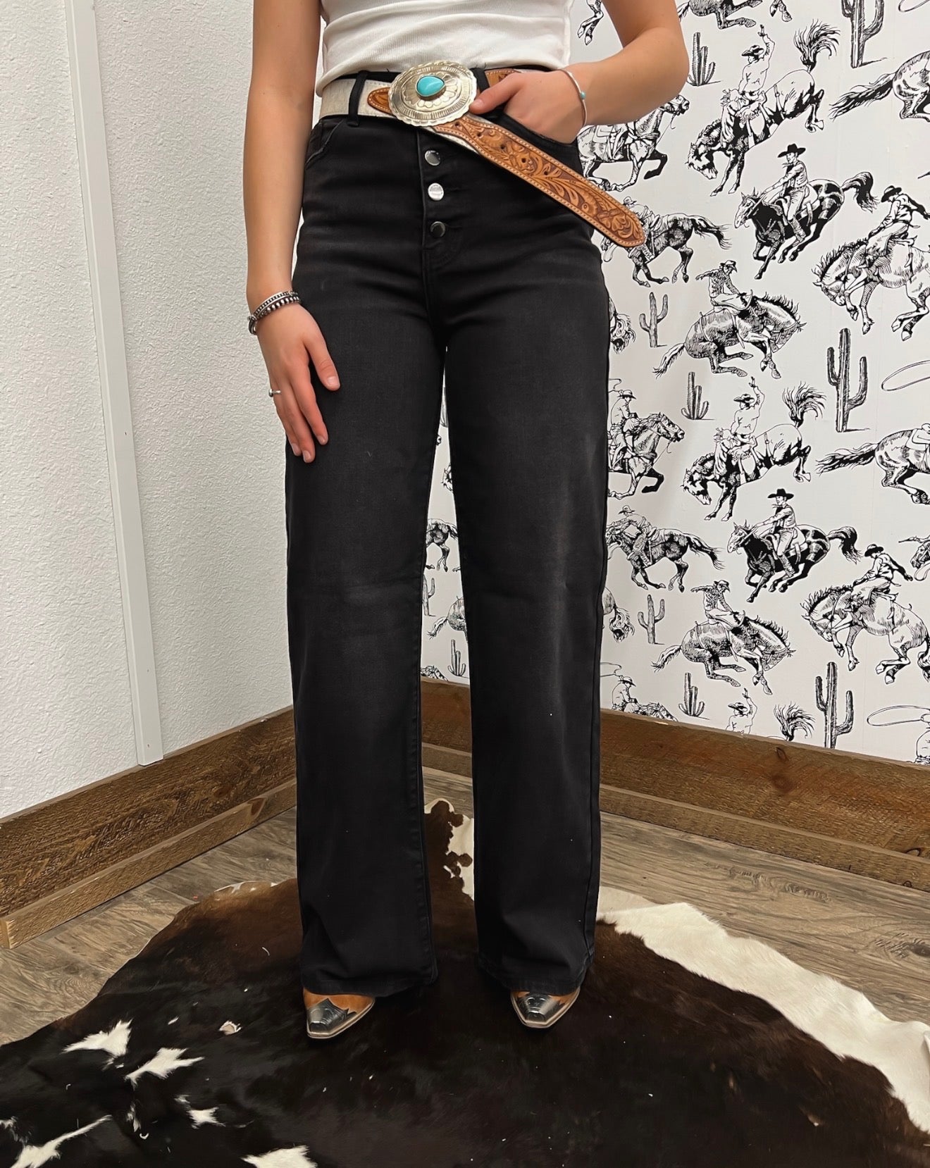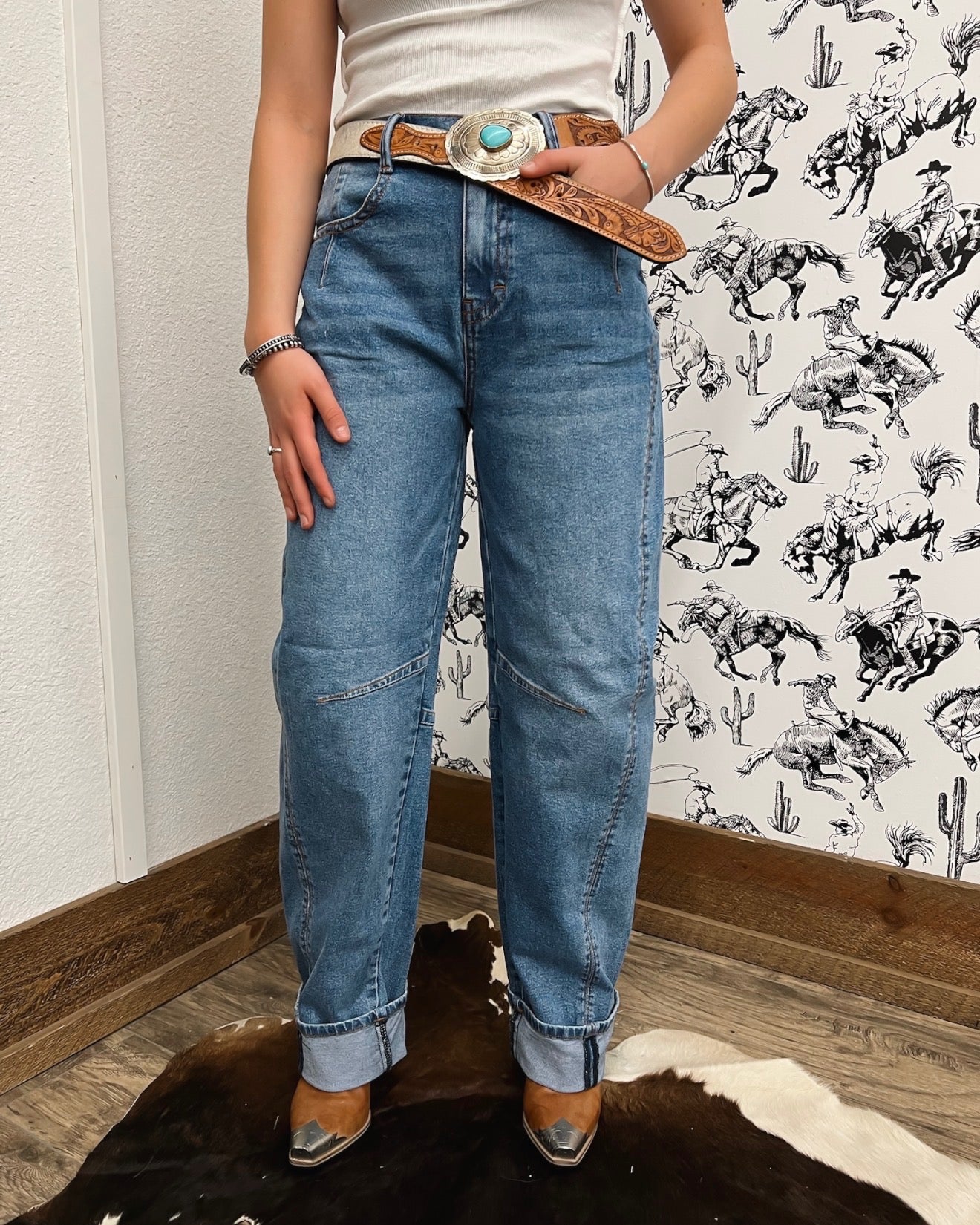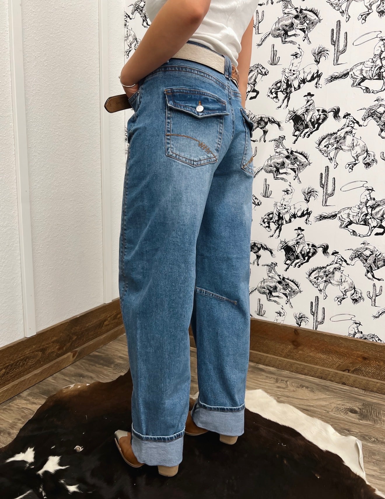 Western Mid Rise Wide Flare Denim