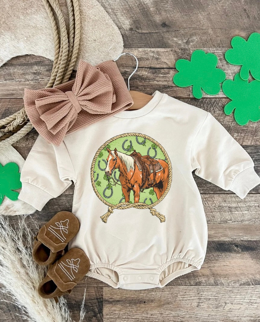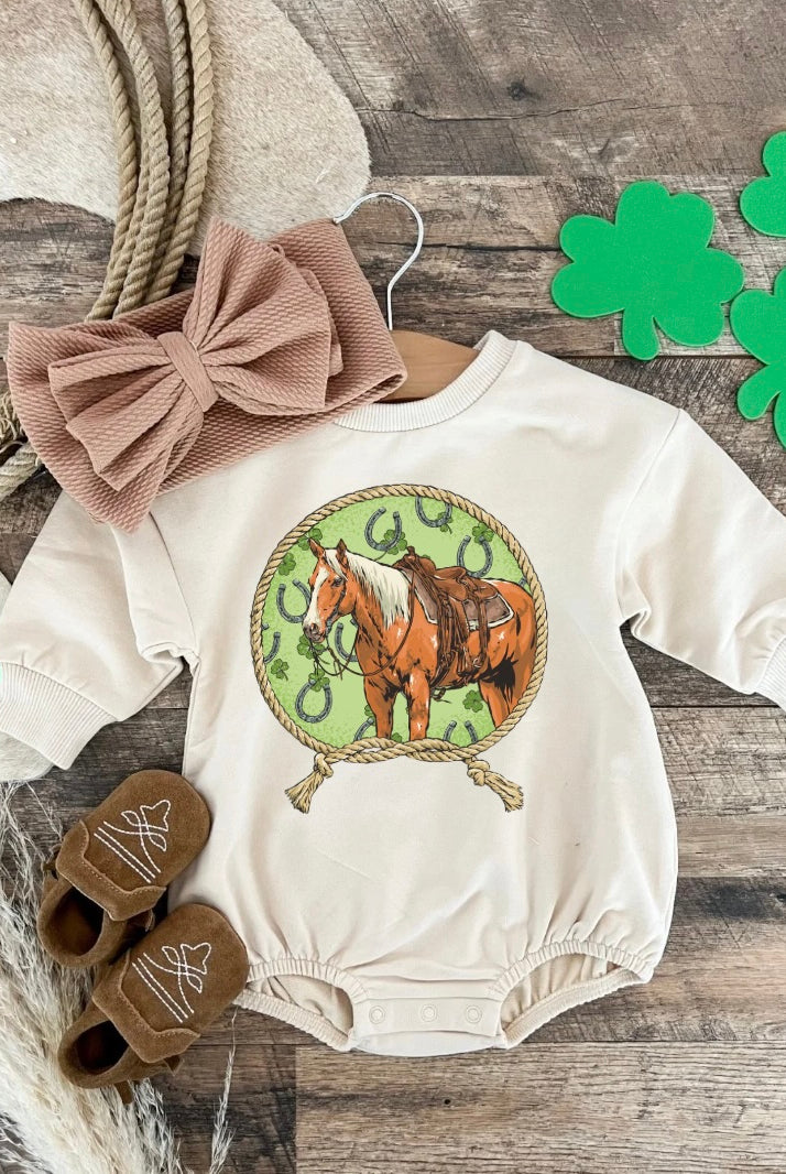 Luck Of The Horse Bubble Romper (Infant) (cream)