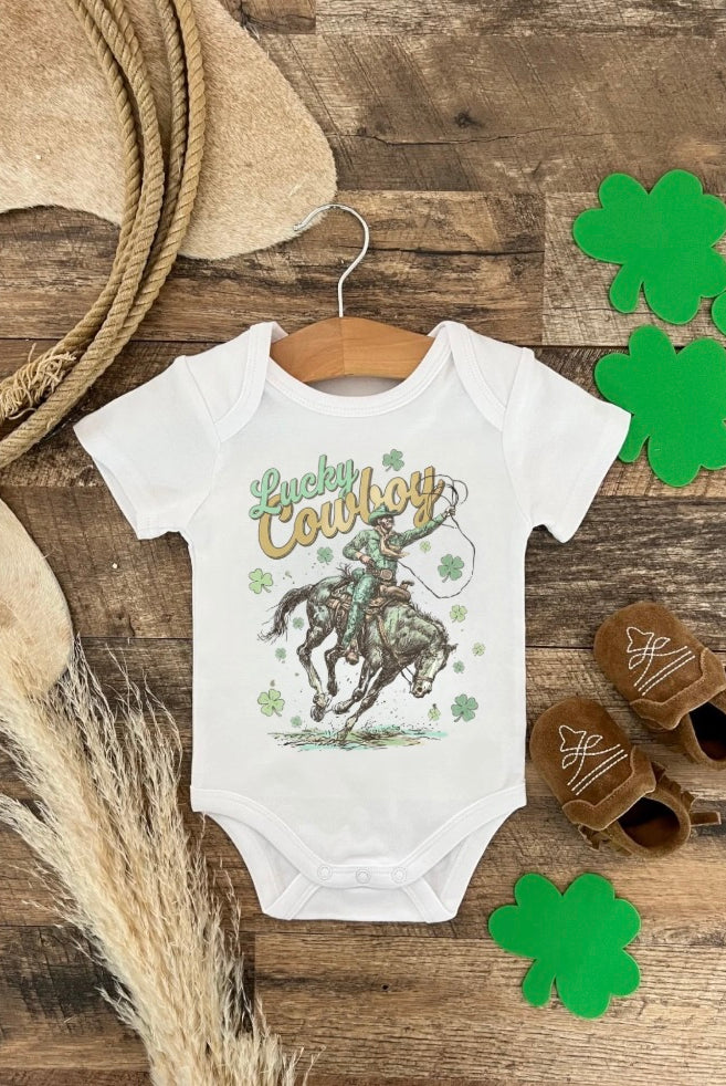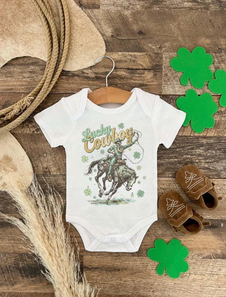 Lucky Cowboy Onesie/Tee(infant/toddler/youth)(White)