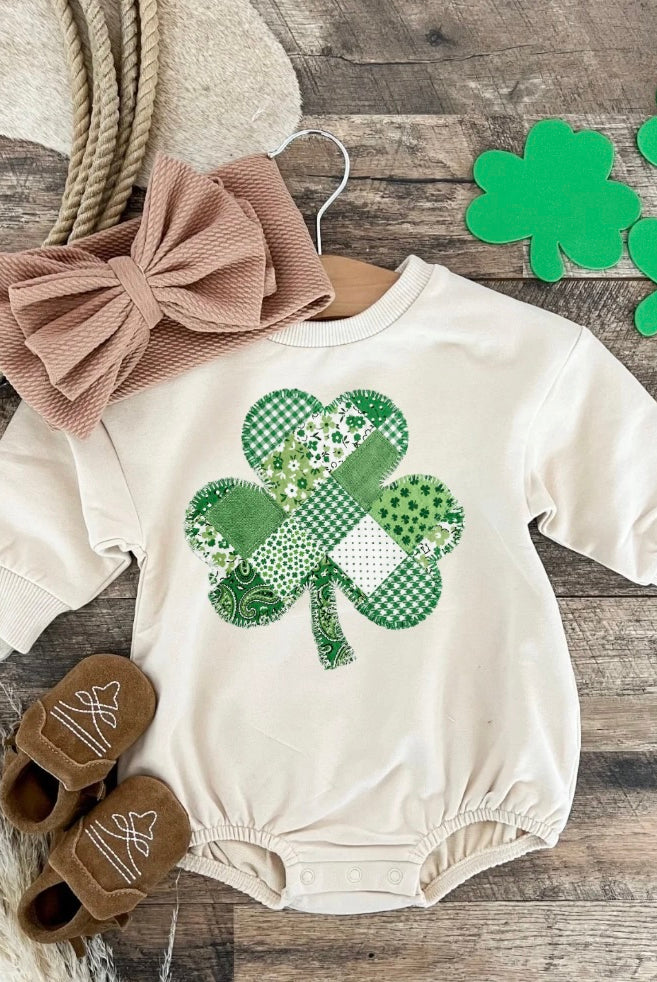 Patchwork Clover Bubble Romper (Infant) (cream)
