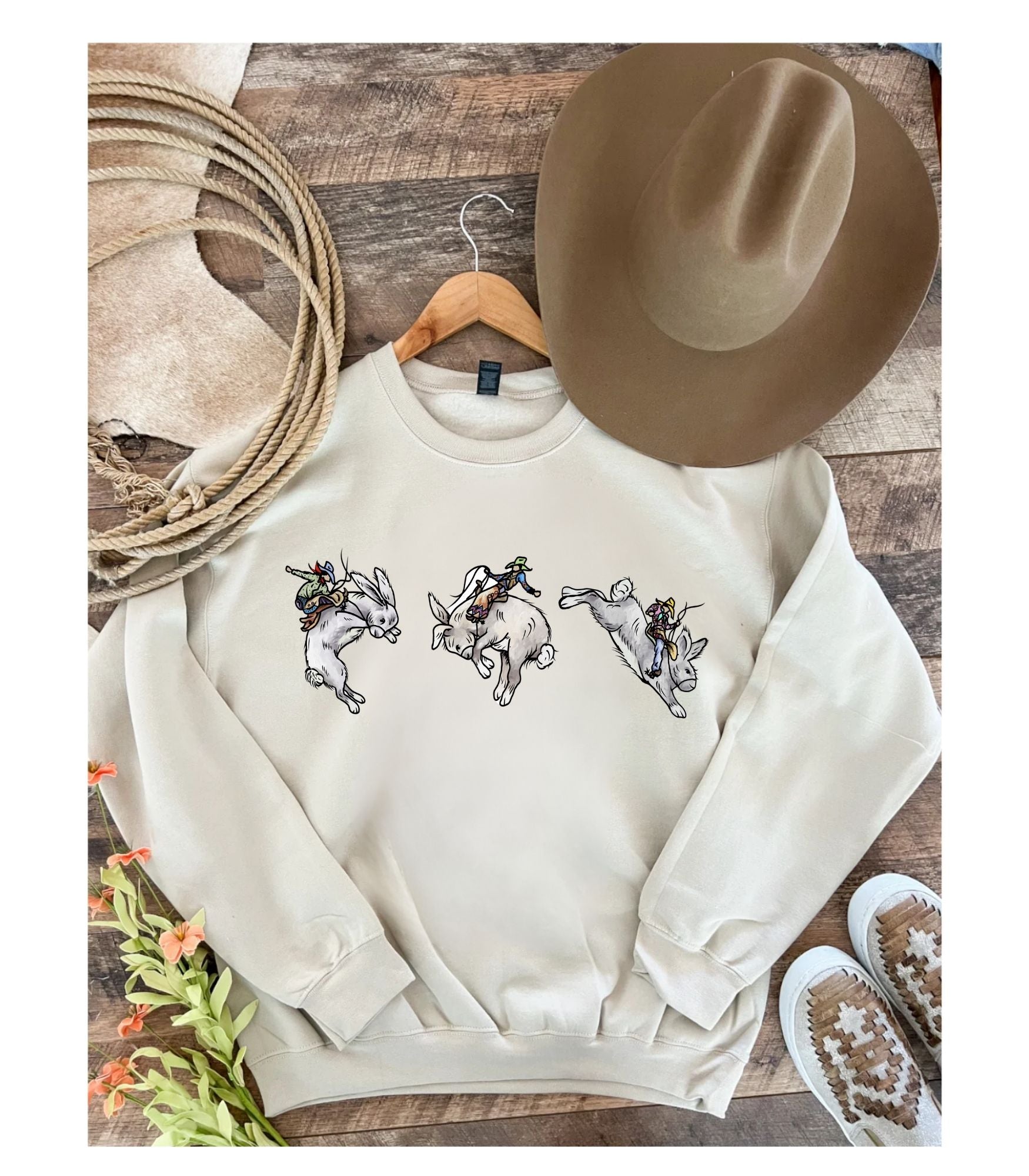 Bunny Hoppin' Western Easter Shirt | Western Graphic Tee & Crewneck (sand)