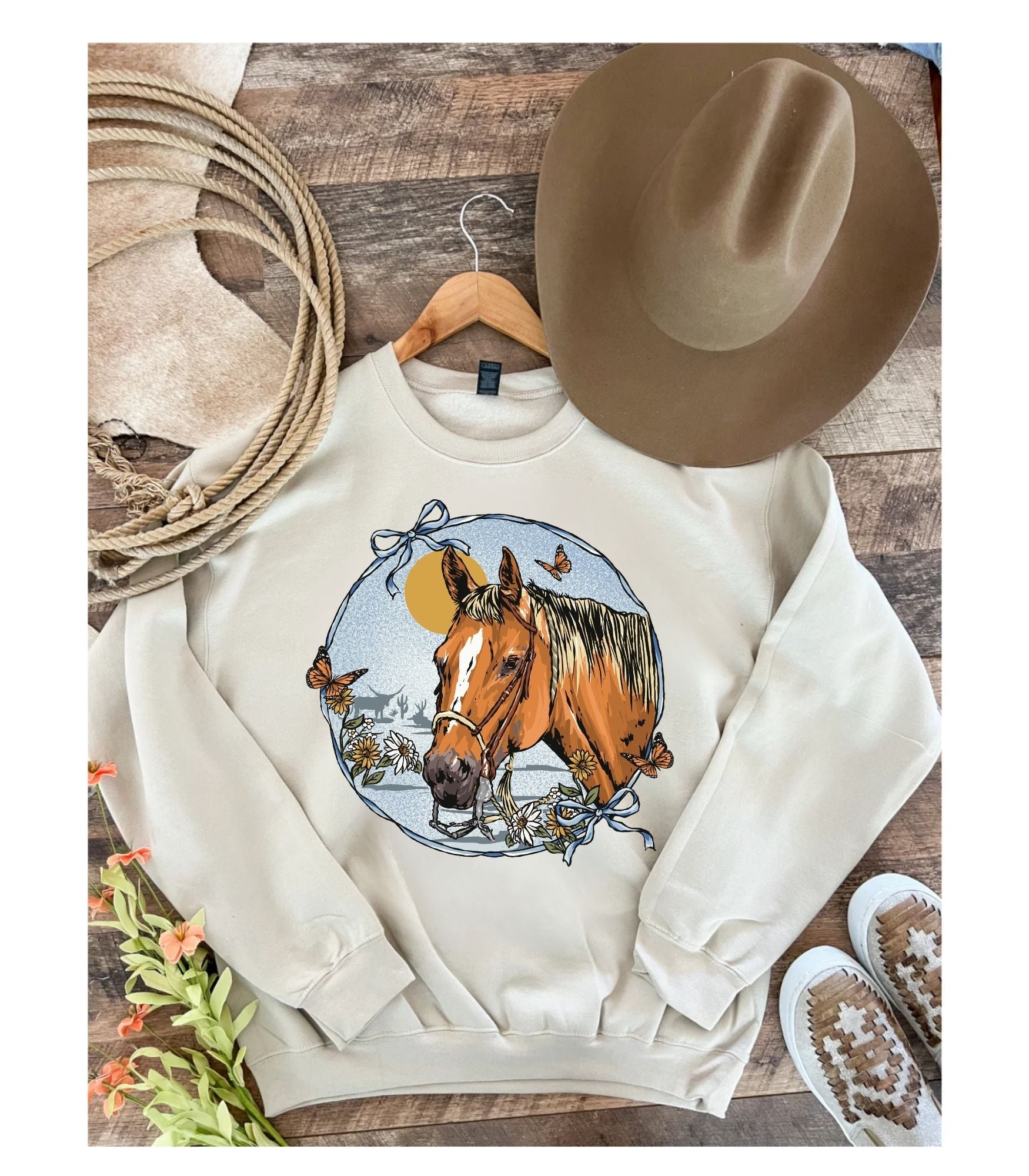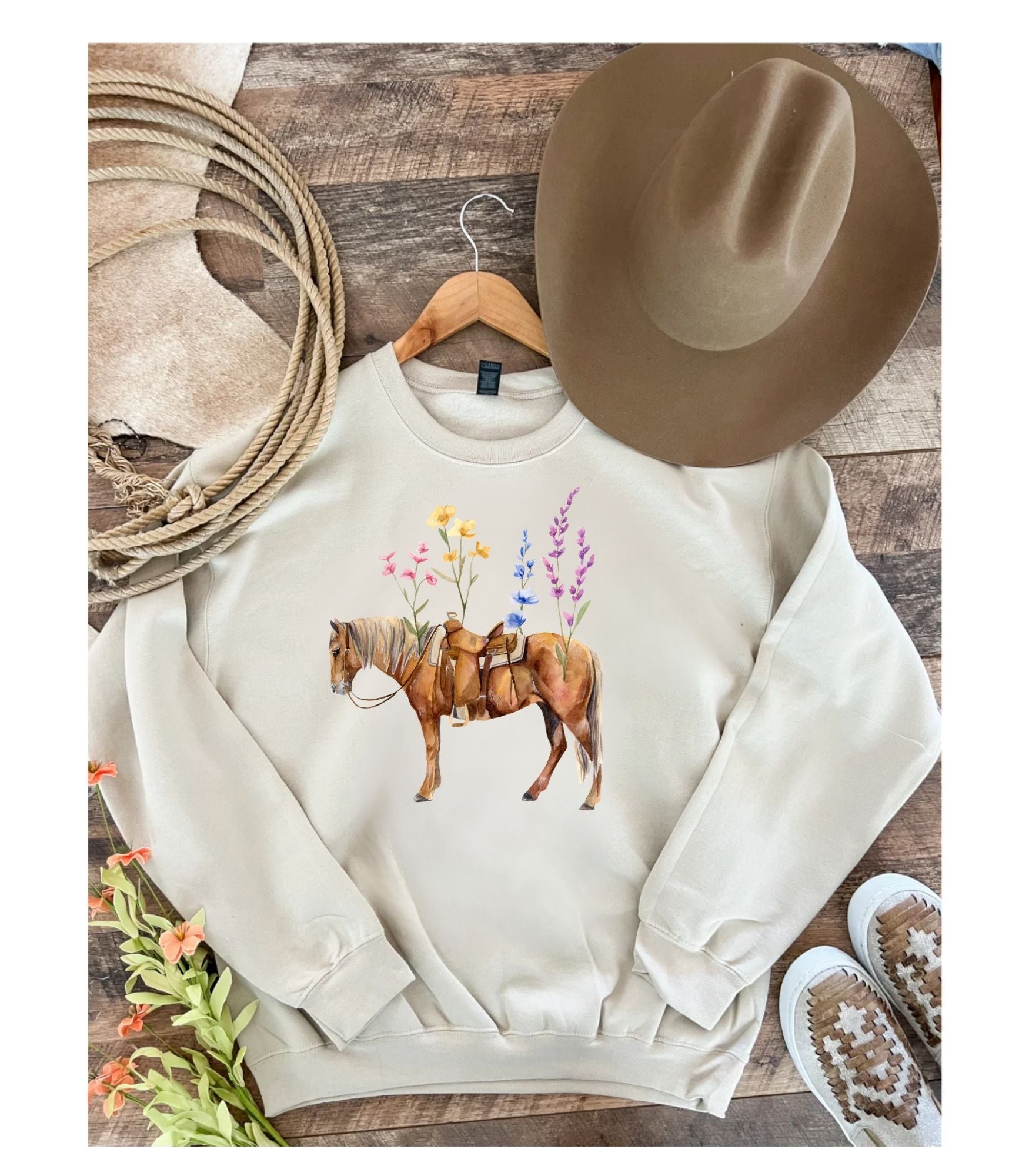 Wildflower Saddle Western Easter Shirt | Western Graphic Tee & Crewneck (sand)