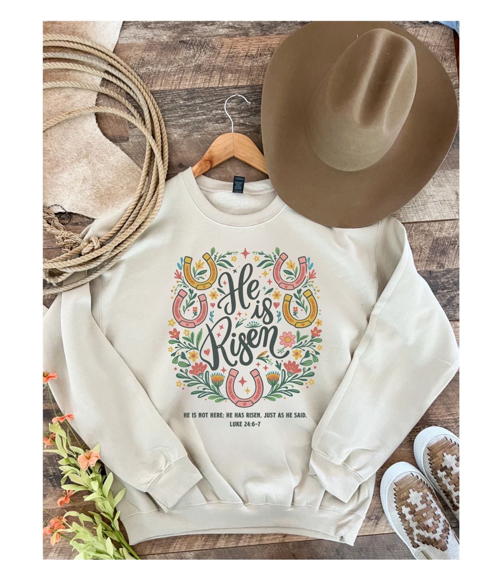 He is Risin' Western Easter Shirt | Western Graphic Tee & Crewneck (sand)