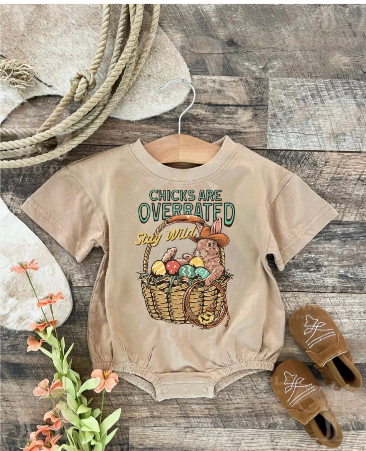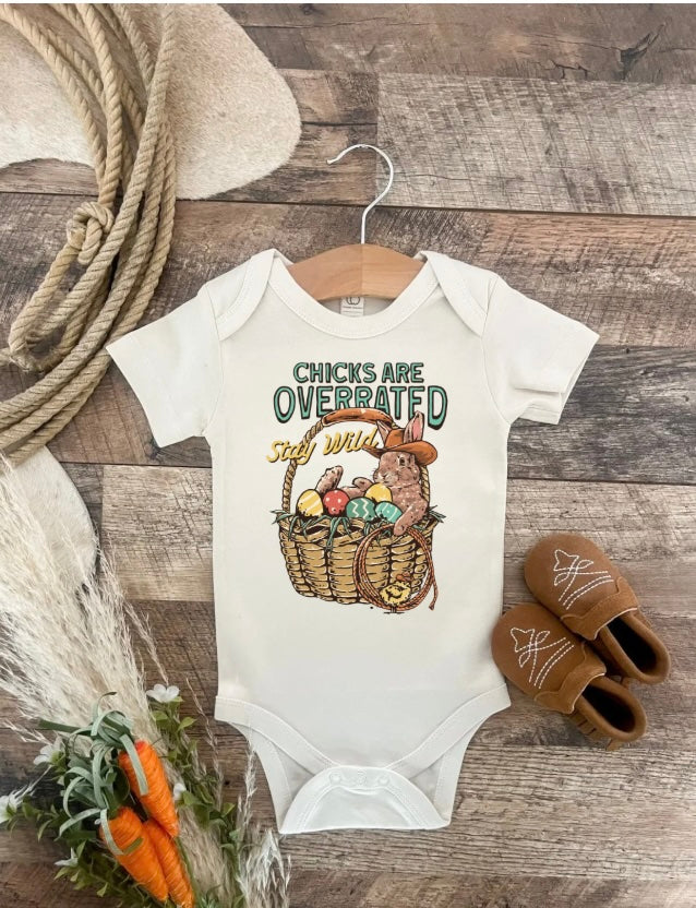 Chicks Are Overrated Western Easter |Onesie or Toddler/Youth Graphic Tee (Cream) (Copy)