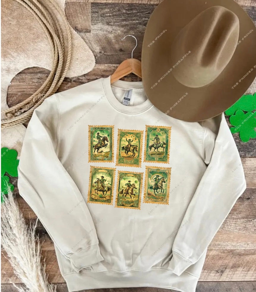 Clover Cowboy Stamps Tee or Sweatshirt (Adult) (Taupe)