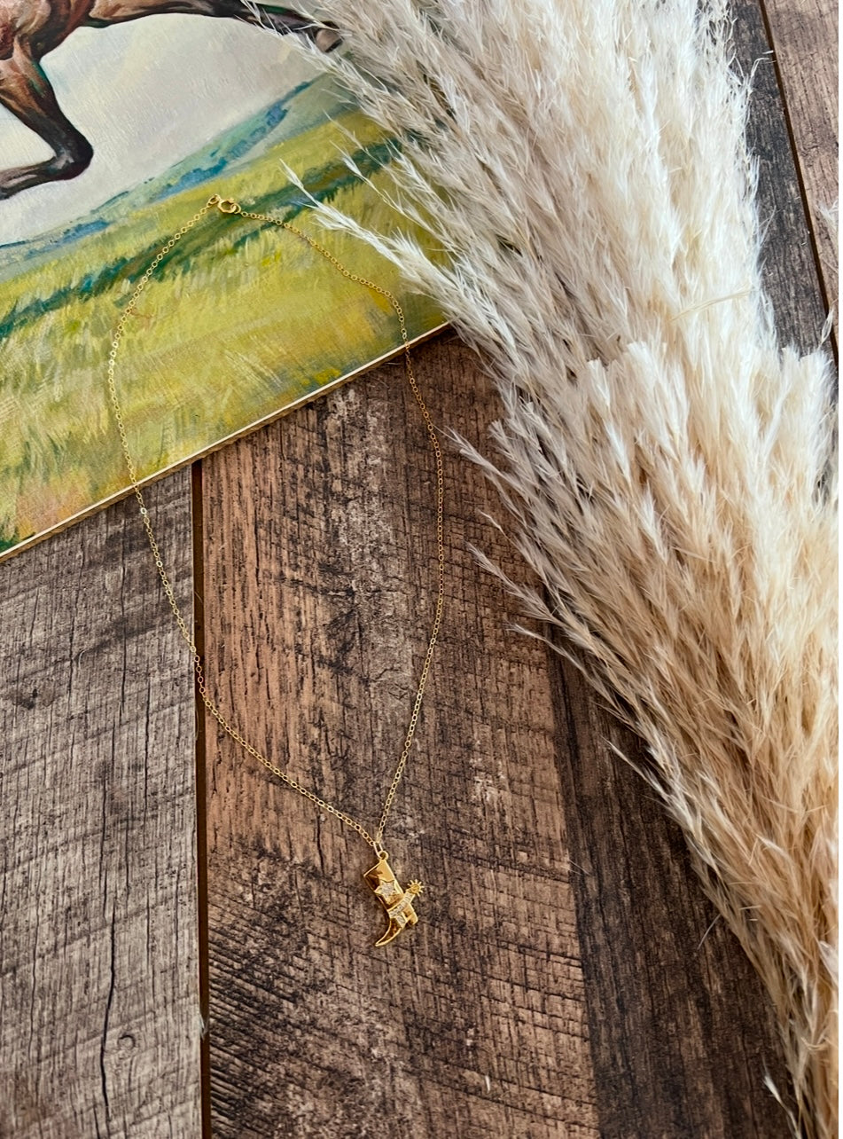 This charming necklace features a miniature cowboy boot pendant, perfect for adding a touch of western charm to your outfit. The dainty design is versatile and can be paired with any outfit, making it a must-have accessory for any cowboy or cowgirl.