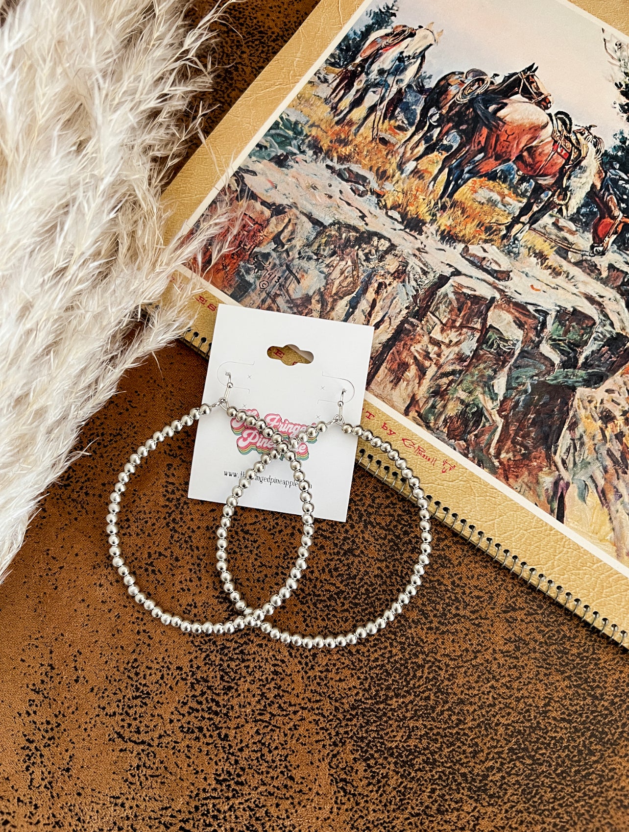 2.5" Long, Tiny 4mm Silver Navajo Pearl, 65mm Hoop Earrings * 2.5" long earrings & fish hook * 2.5"(65mm) diameter hoop * 4mm silver navajo pearl * Light! Each earring 3 grams weight * Nickel, Lead & Chrome free