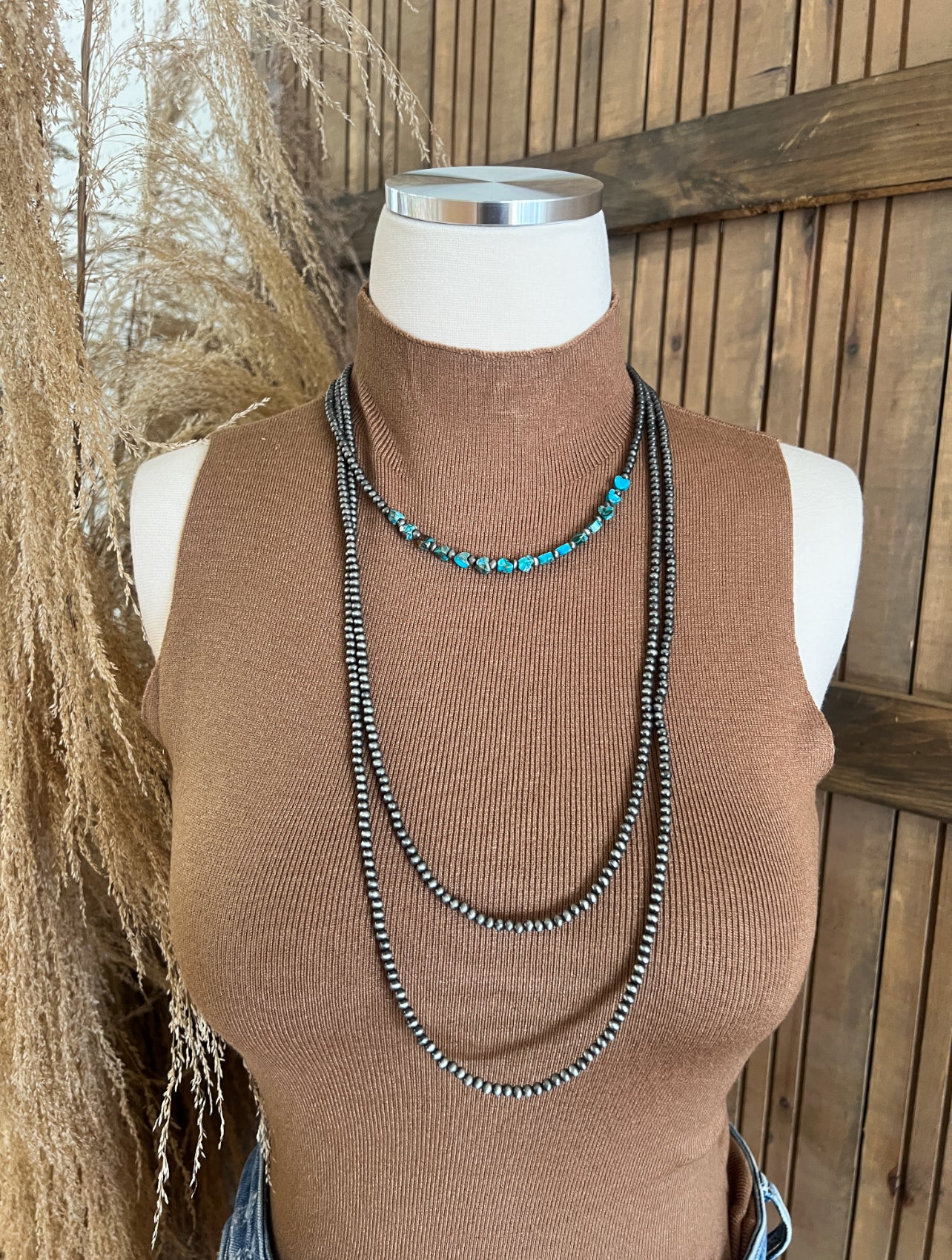 26" Long, Handmade 3-strand Navajo Bead & Heart Gemstone Necklace * Natural stone may vary in size, color or shape * 3-strand (16", 20", 26" long) necklace & 5" extender * 16" long, 5mm heart gemstone & 4mm navajo bead necklace * 20" long, 4mm Faux bead necklace * 26" long, 4mm Faux bead necklace * 30 grams weight * Nickel, Lead & Chrome free
