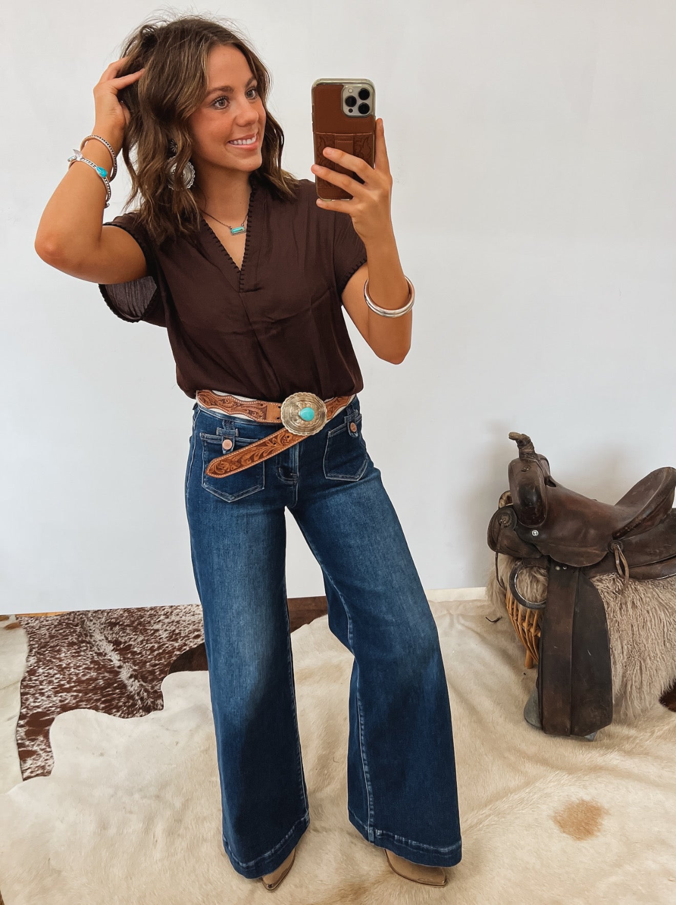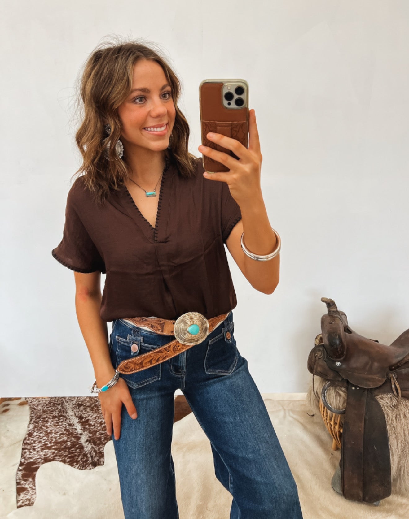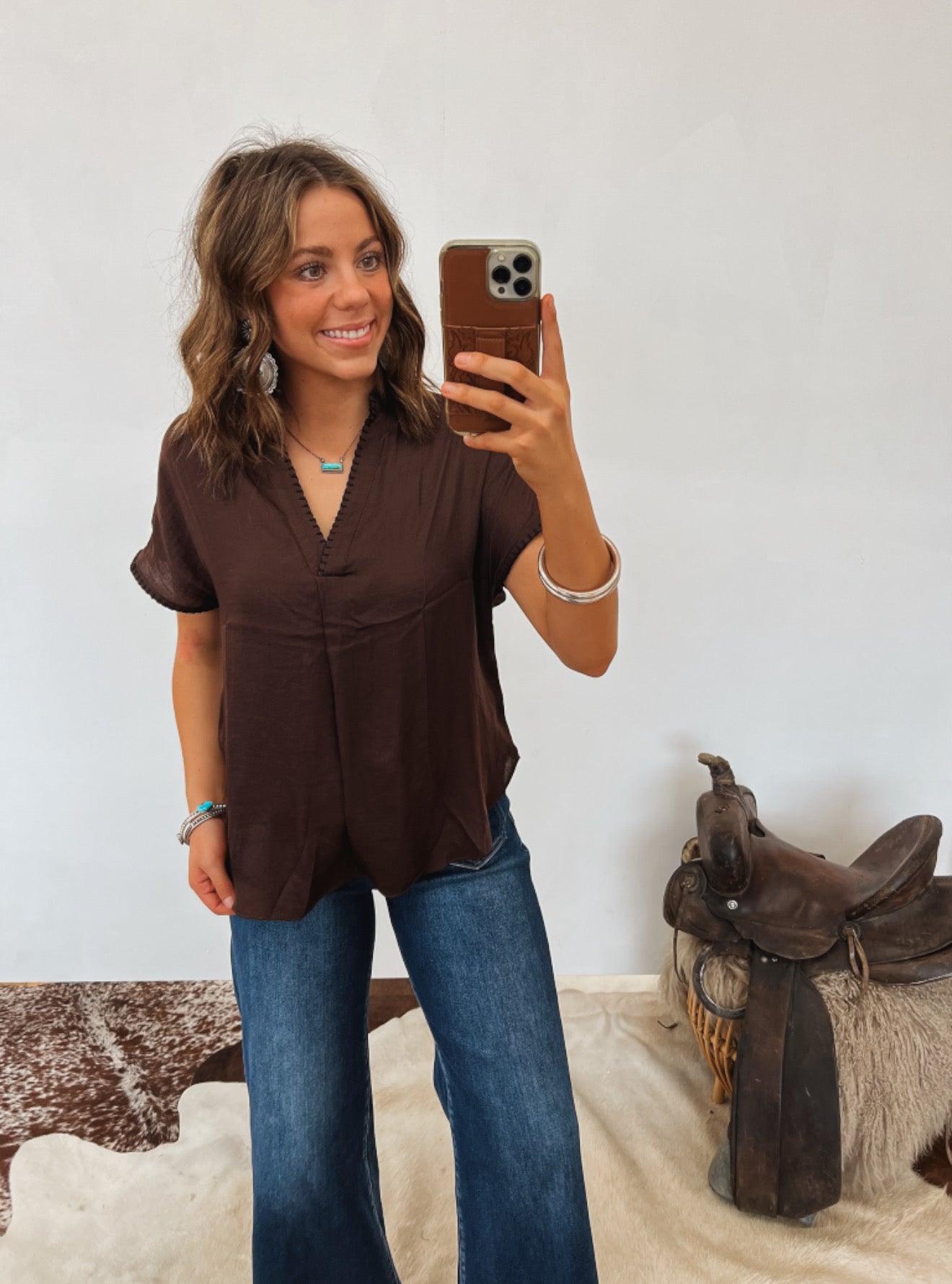 Whipstitch Cowgirl Drop Shoulder Blouse