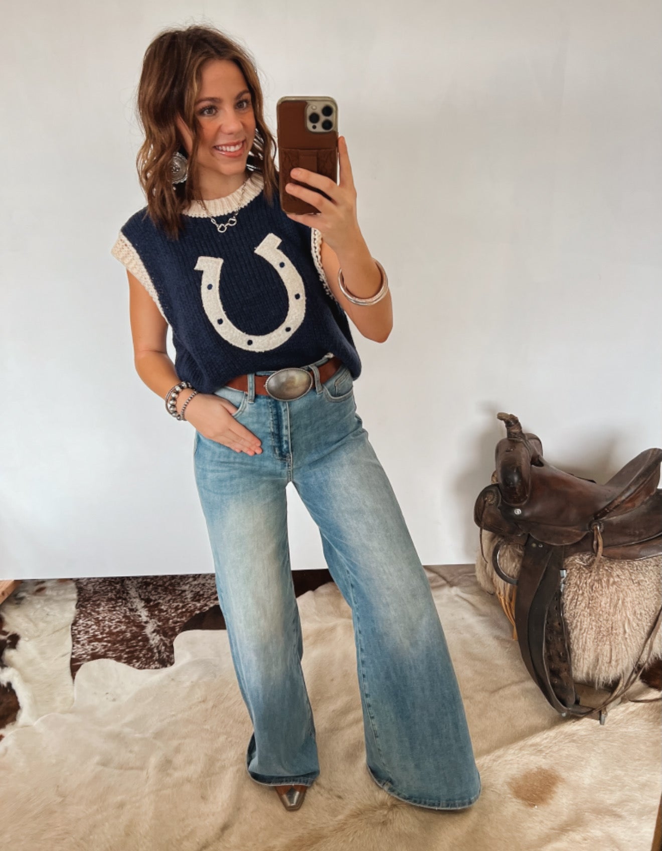 Wild Woven Horseshoe Sweater Vest(Mocha)