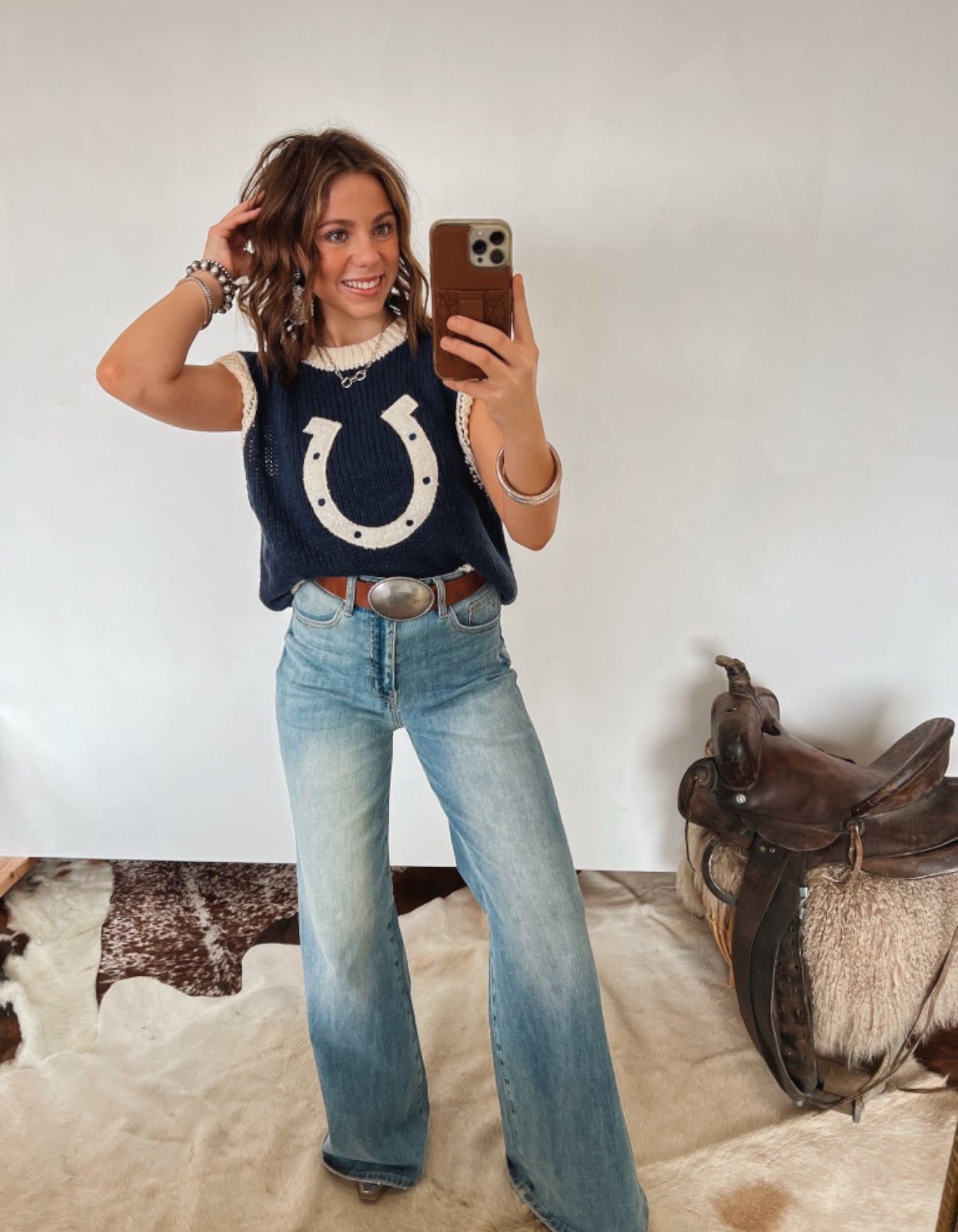 Wild Woven Horseshoe Sweater Vest (Navy)