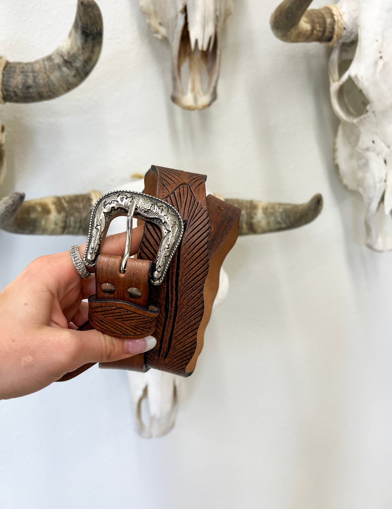 Feather Leather Tooled Belt