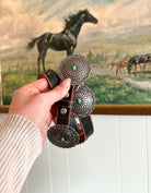 Concho Leather Belt western style silver rectangular buckle 100% genuine distressed leather