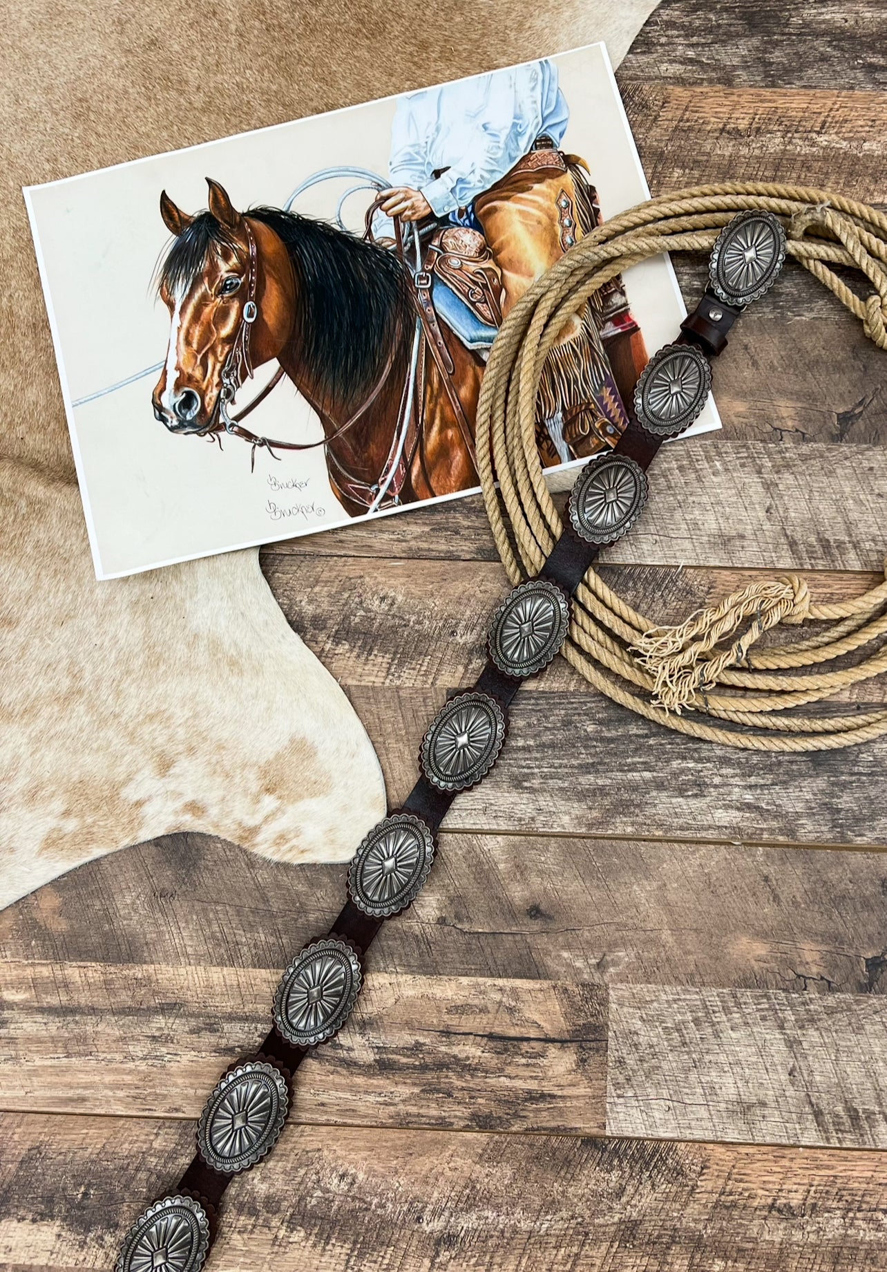 Vintage Leather Silver Concho Belt (Brown)