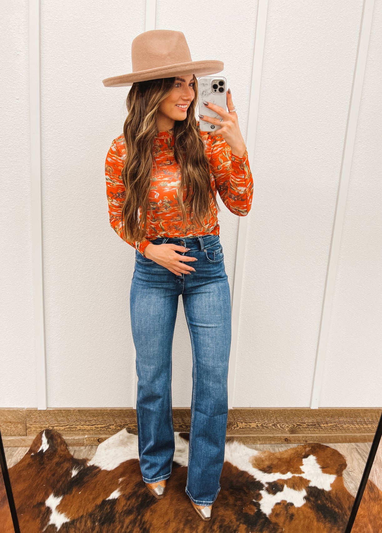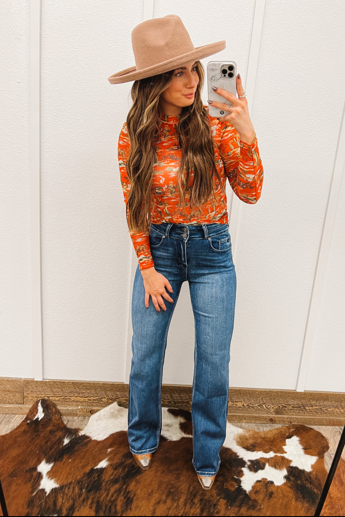 ULTRA HIGH RISE HOLLY FLARE DARK WASH STRETCH REGULAR HEM DOUBLE WAISTBAND ZIPPER FLY