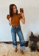 Darlin Puff Sleeve Bodysuit (Camel)
