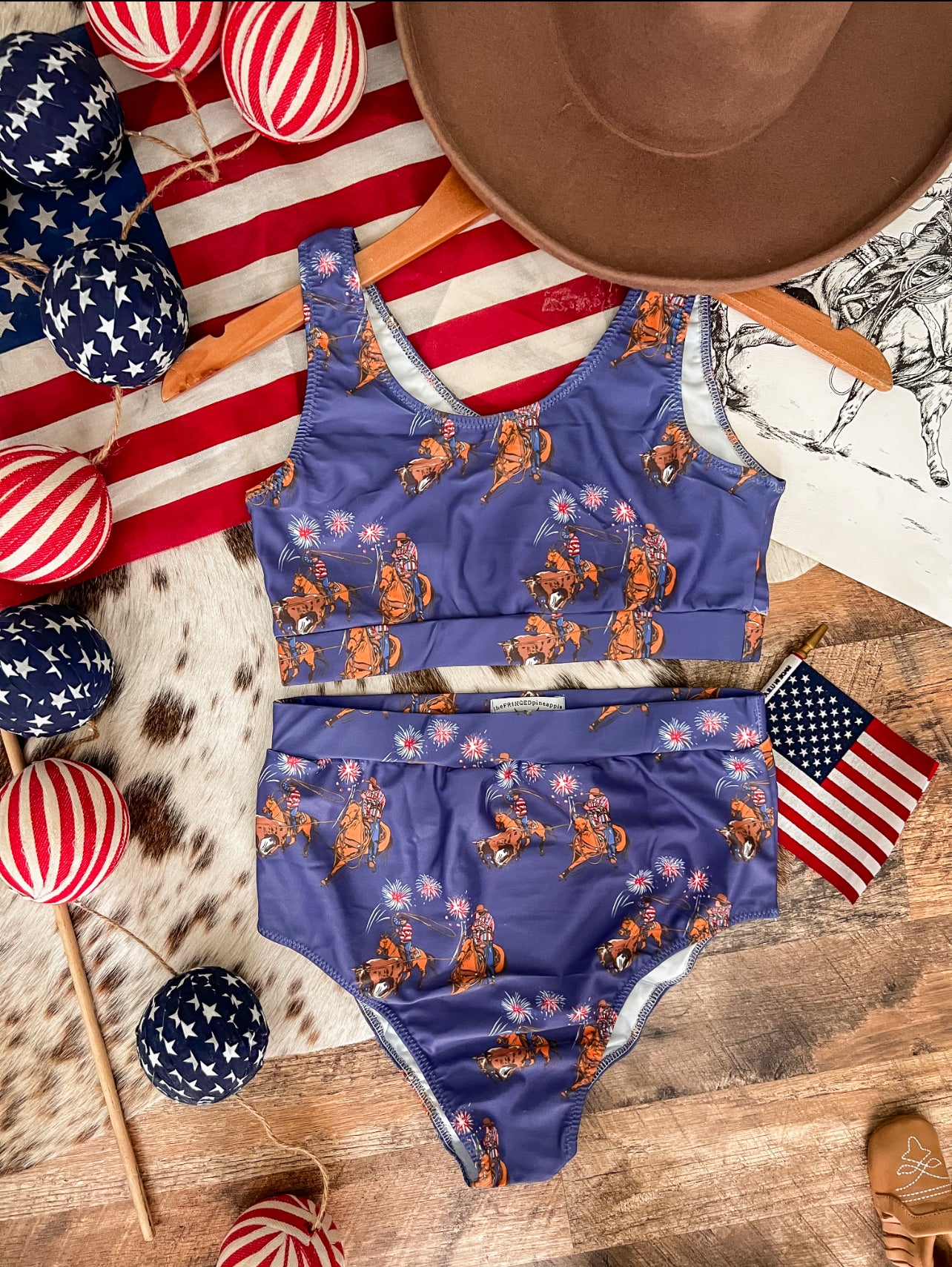 Western 4th Of July-Team Roper High Waisted Swimsuit (womens)(final sale)