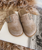 Western charm meets everyday comfort with The Jolene Clog Mules in grey. Featuring a soft suede finish, silver buckle detail, and stud accents, these slip-ons bring a rustic yet modern vibe to your look. The cushioned insole makes them perfect for all-day wear.