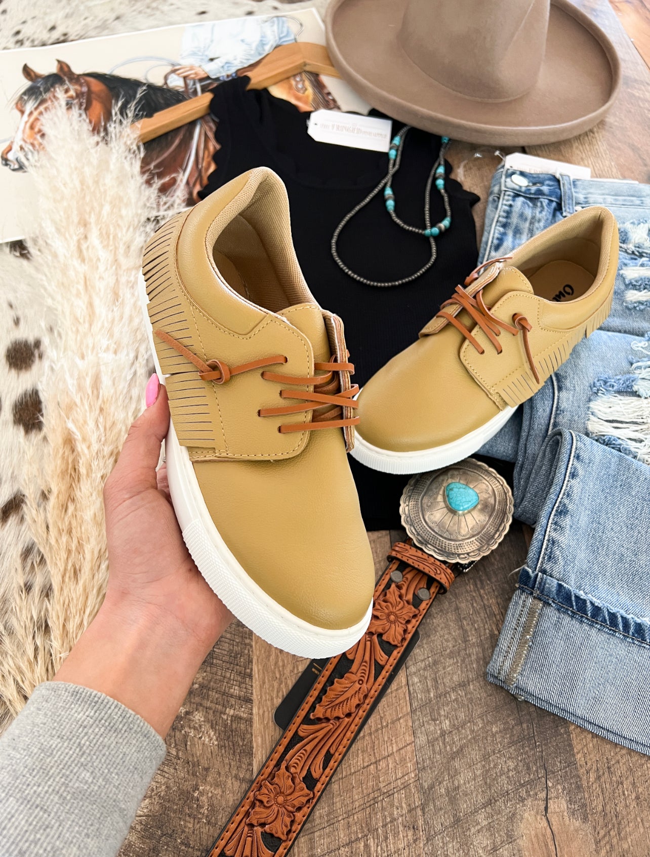 Western Fringed Sneakers(Taupe)