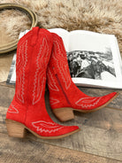 Step into timeless western style with the Westbound Willow Boot. Designed with classic western stitching and a tall silhouette, these boots bring effortless confidence to any outfit. The sleek pointed toe and stacked heel create a flattering profile, while the pull-on design makes them easy to wear from day to night. Whether paired with denim, dresses, or skirts, these boots add the perfect finishing touch to your western-inspired look.