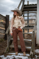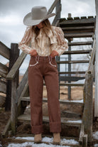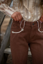 Smiley Brown Straight Leg Denim — a western-inspired staple with timeless character and everyday versatility. Crafted from 100% cotton, these non-stretch denim jeans feature a classic straight leg silhouette and standout contrast detailing for a subtle vintage feel. The structured fit offers a flattering shape while maintaining an authentic denim look that only gets better with wear.
