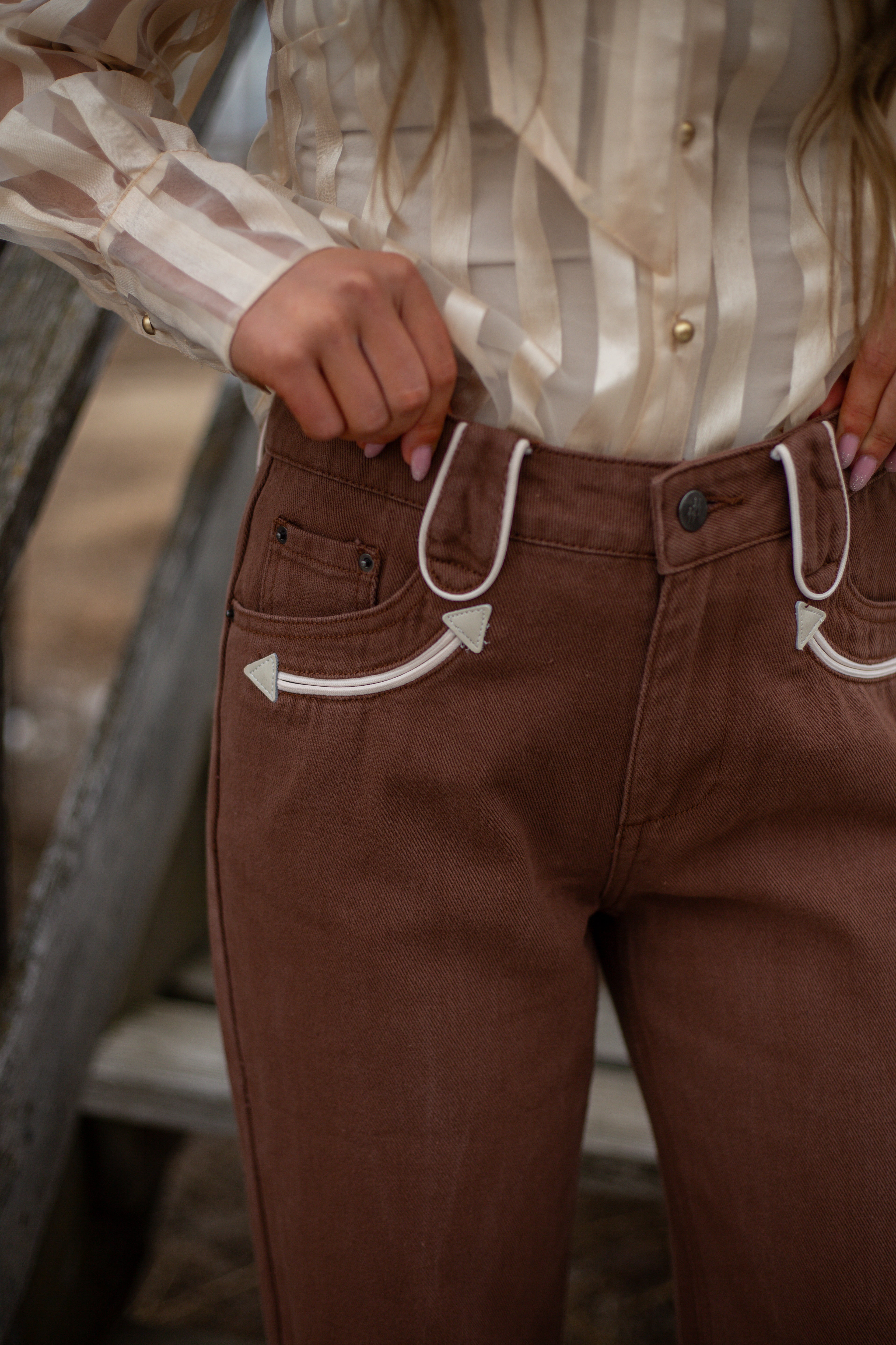 Western-inspired contrast pocket detailing