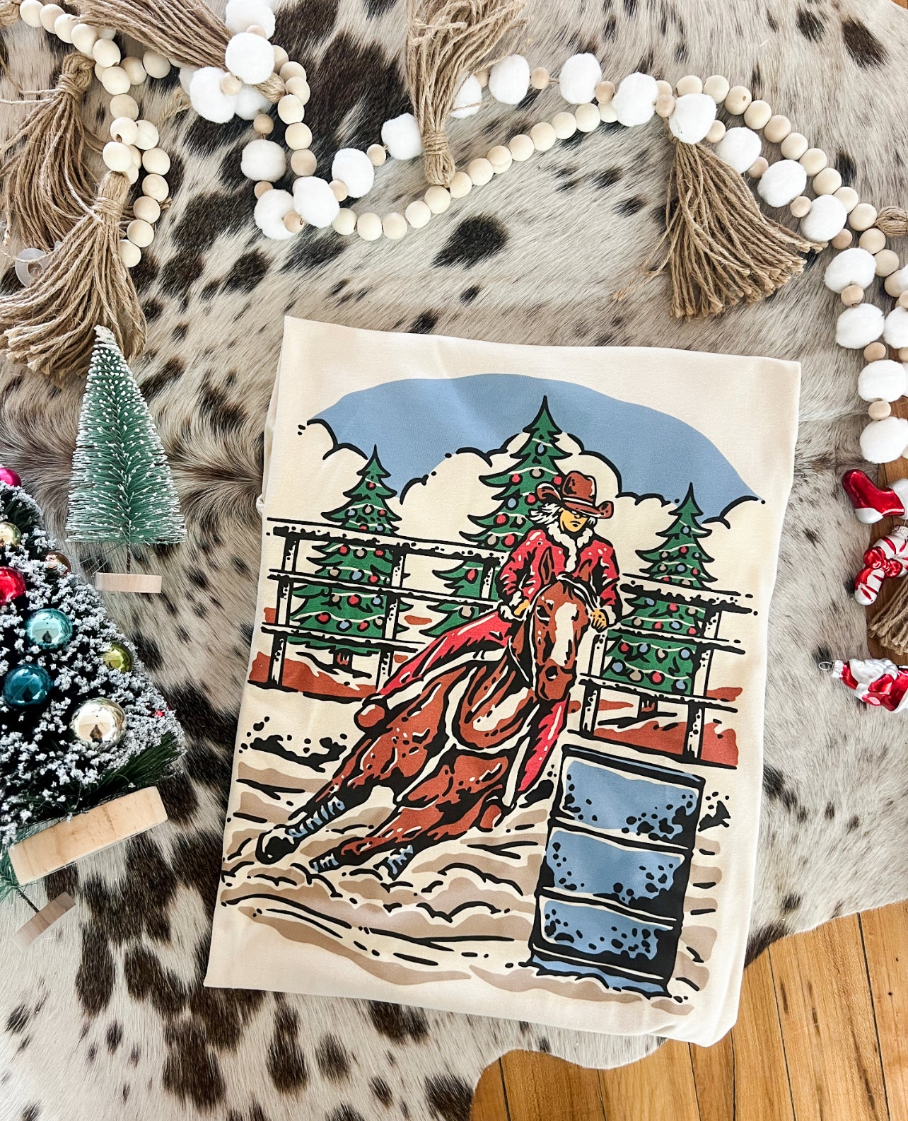 Barrel Racing Mrs. Santa Christmas Design Tee or Sweatshirt (cream) (Adult)