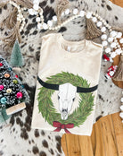 Bullskull Christmas Wreath Christmas Design Tee or Sweatshirt (cream) (Adult)