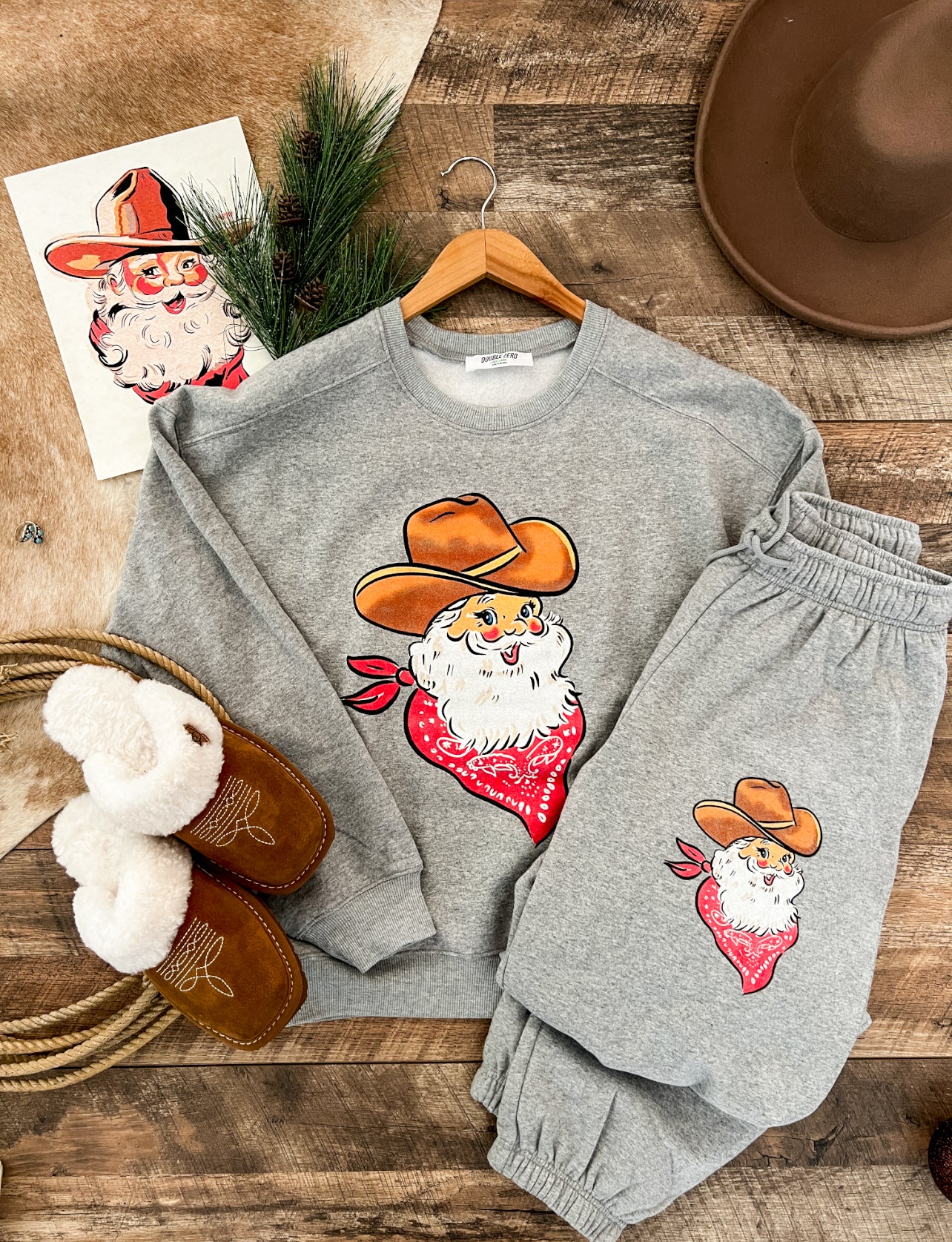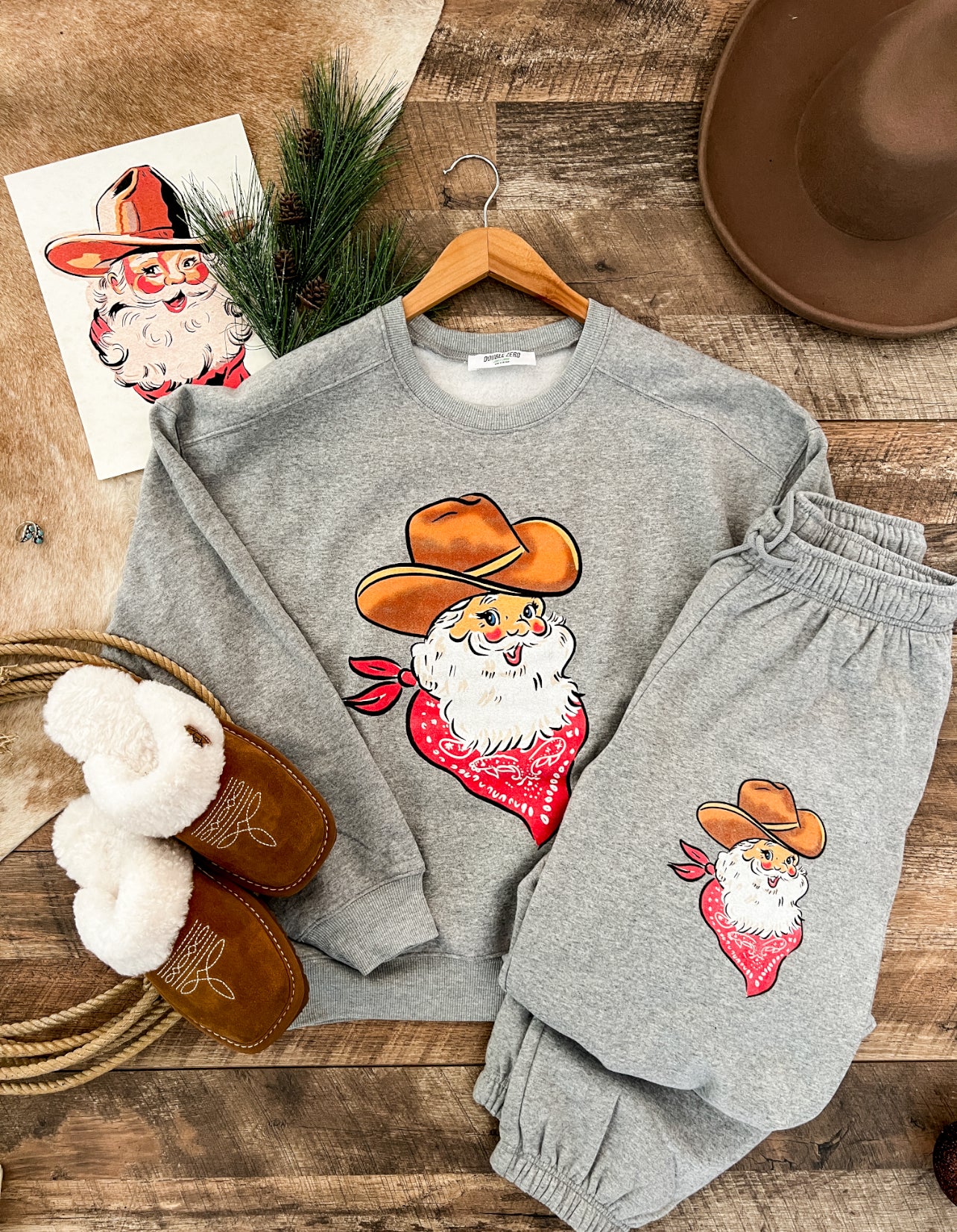 Get cozy this Christmas with our Fringed Exclusive Cowboy Santa Jogger Set!