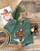 For all those who always knew Santa was a rancher at heart — this Western Christmas design is made just for you! Featuring a bold cowboy Santa graphic printed on soft green tones, it’s the perfect blend of festive spirit and ranch-life style.