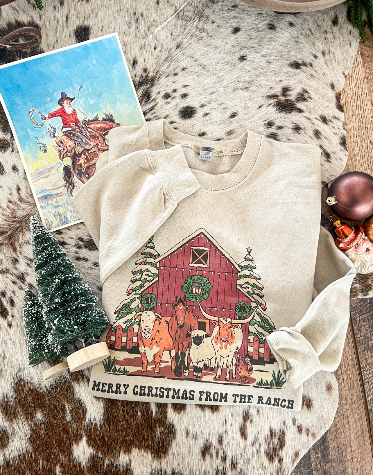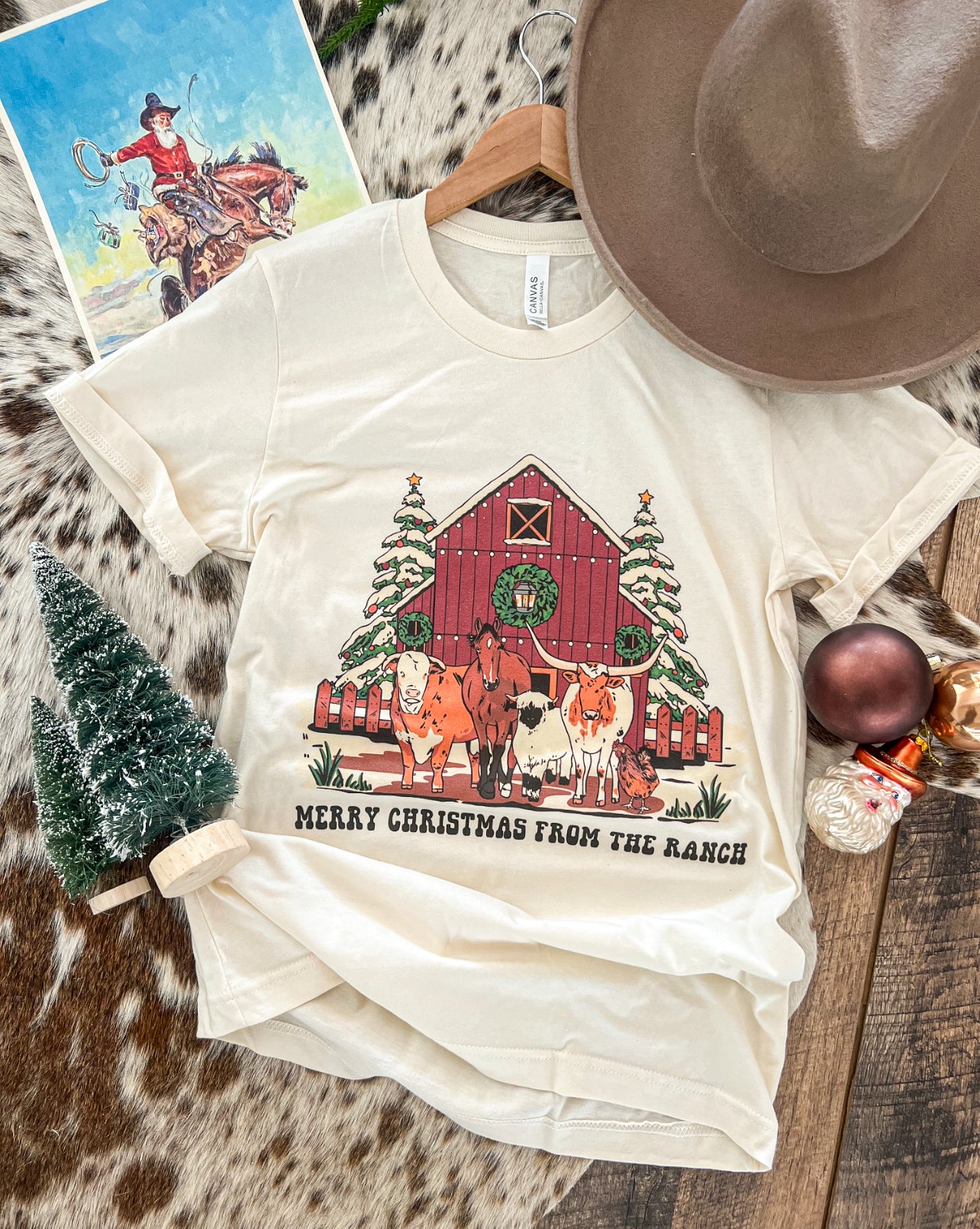 Merry Christmas From The Ranch Design Tee or Sweatshirt (cream) (Adult)