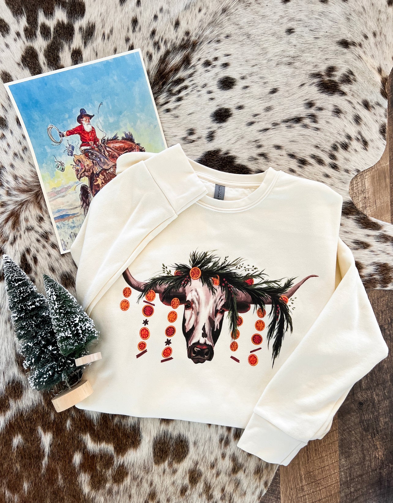 Orange Garland Longhorn Christmas Sweatshirt (adult)