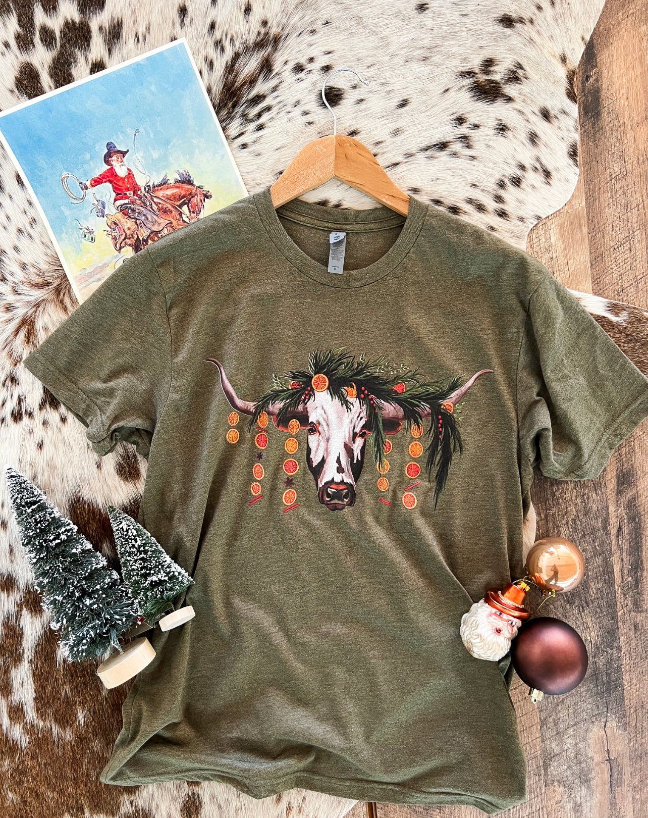 Orange Garland Longhorn Christmas Tee (Adult)