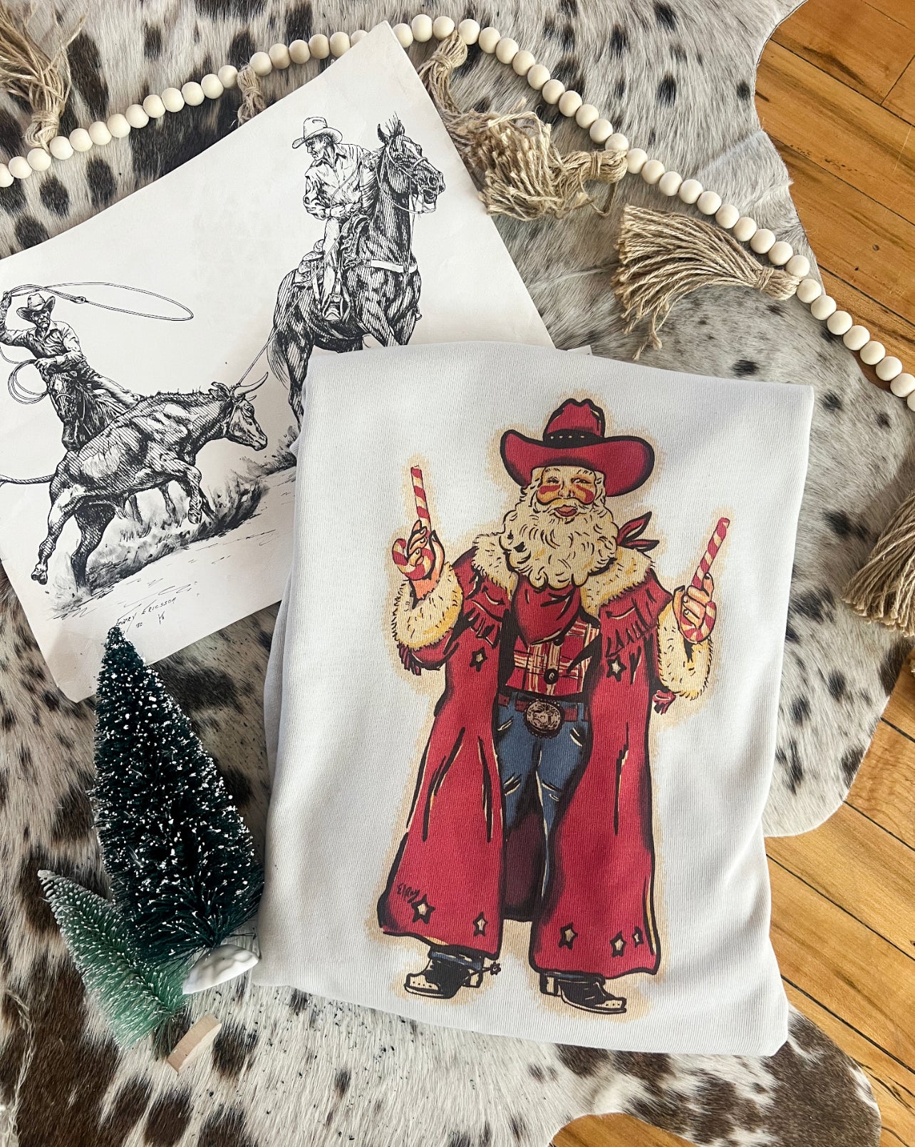 Outlaw Cowboy Santa Design Tee or Sweatshirt (cream) (Adult)
