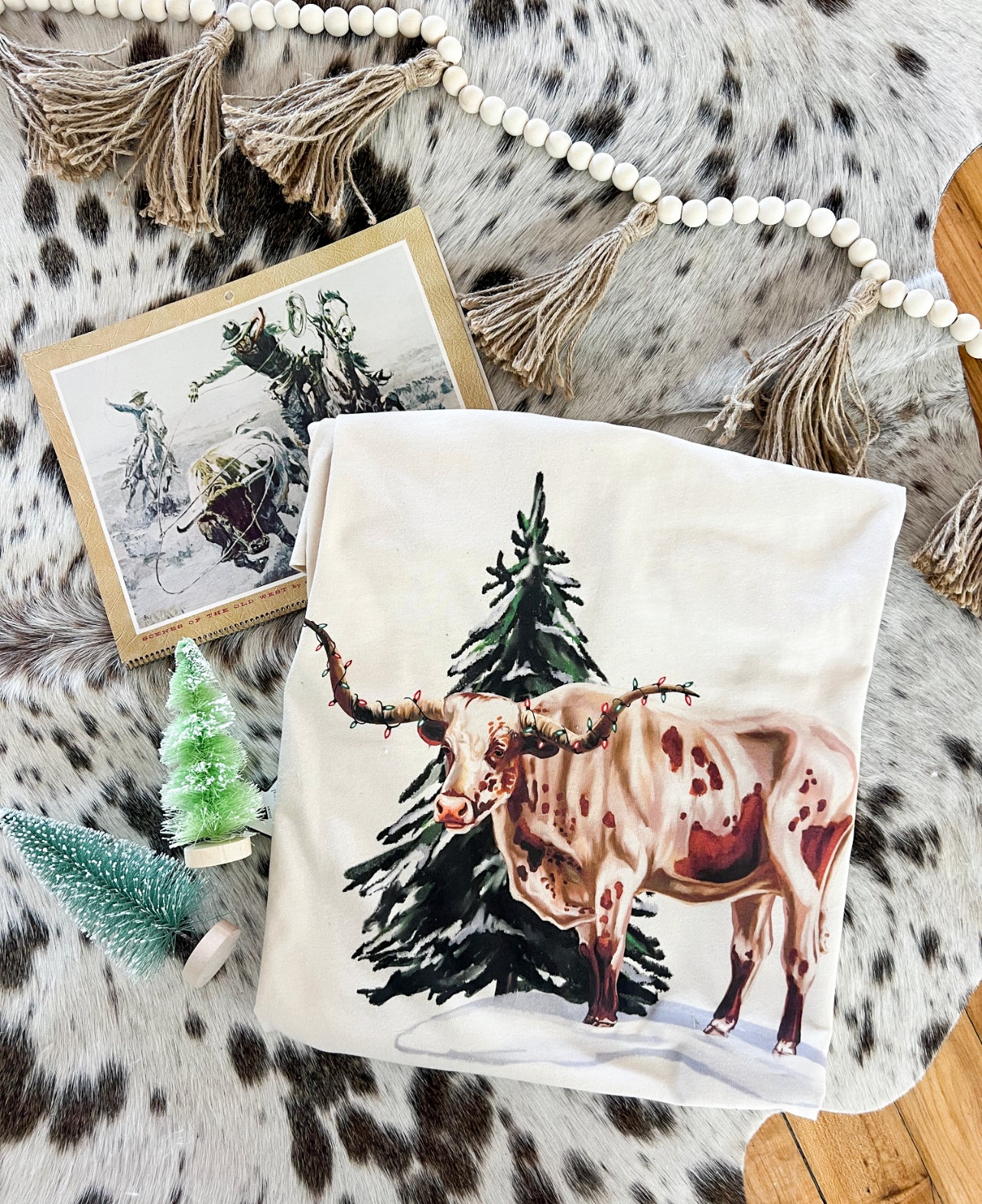 Tangled Longhorn Christmas Design Tee or Sweatshirt (cream) (Adult)