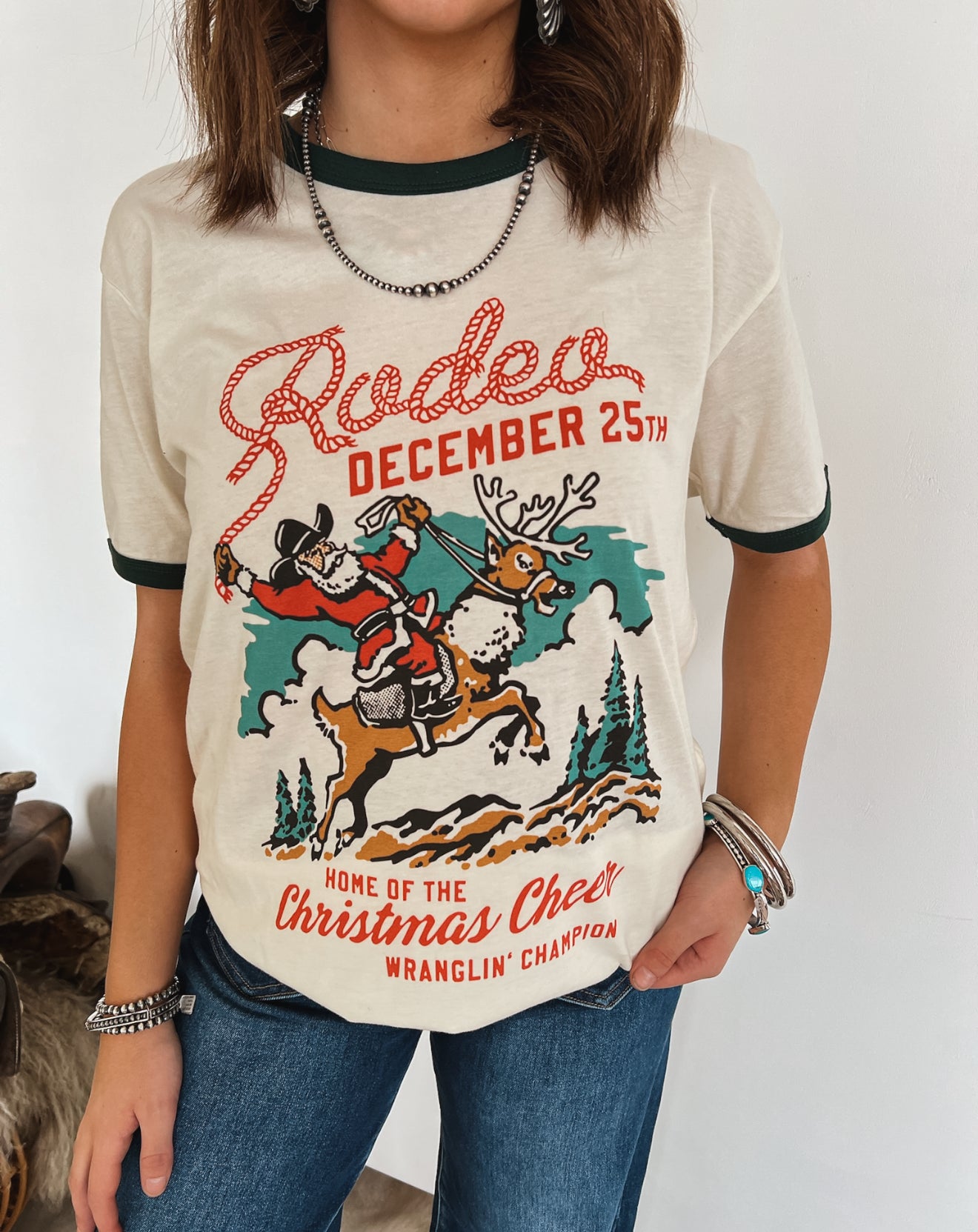 Rodeo Christmas Cheer Ringer Tee — Forest Green Trim