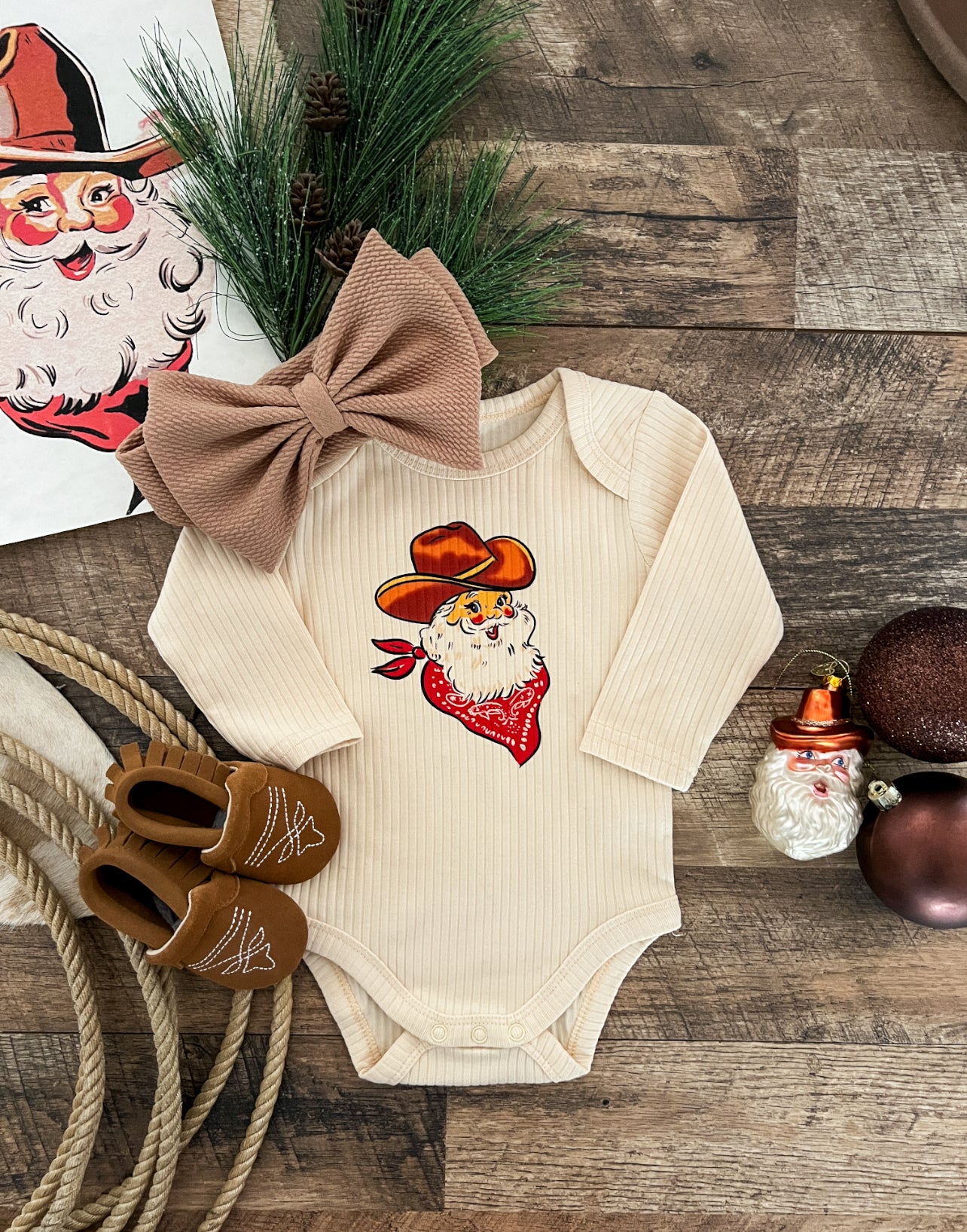 Cattleman Christmas Sant Design (l/s Ribbed Onesie/Tee)(cream)