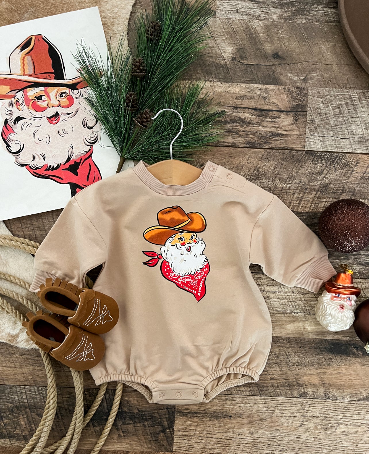 Cattleman Santa Bubble Romper (Tan)