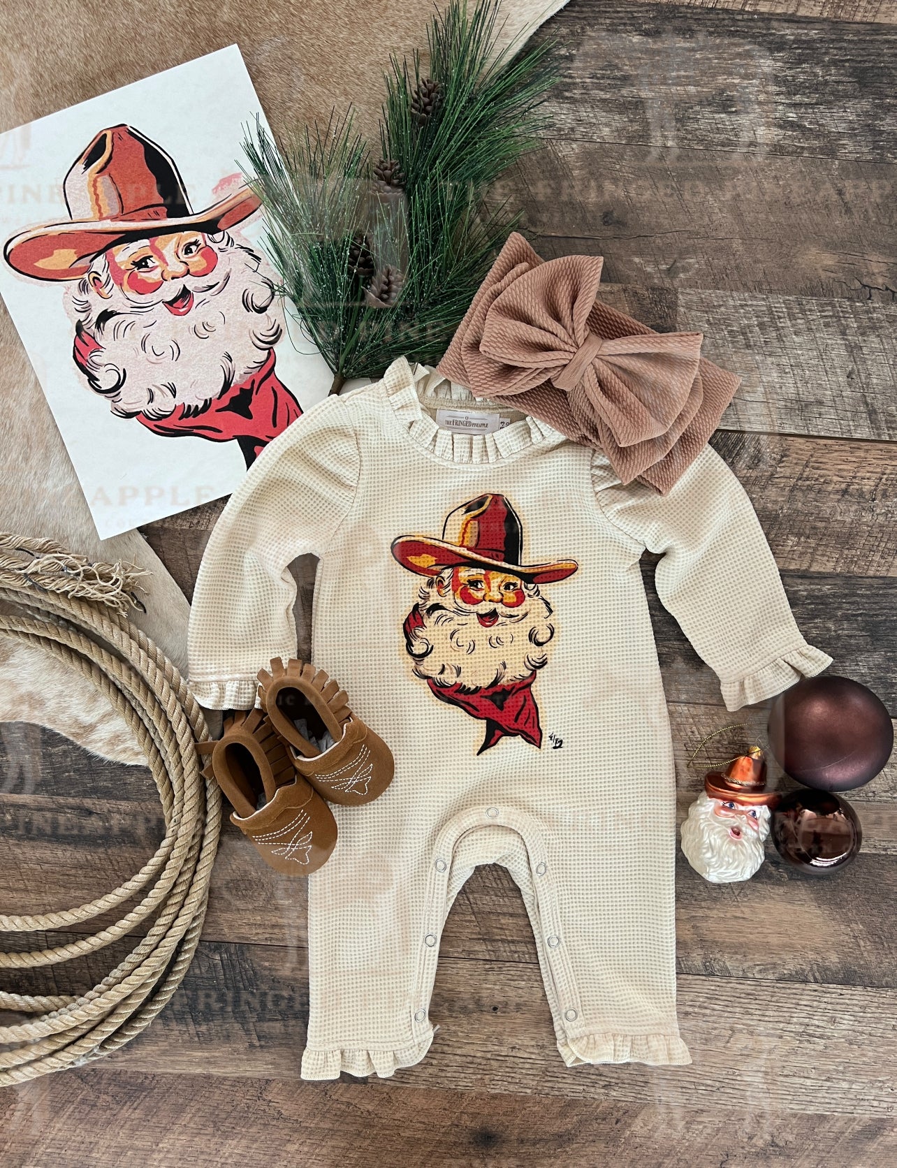 Cowboy Santa Christmas Waffle Romper (Cream)