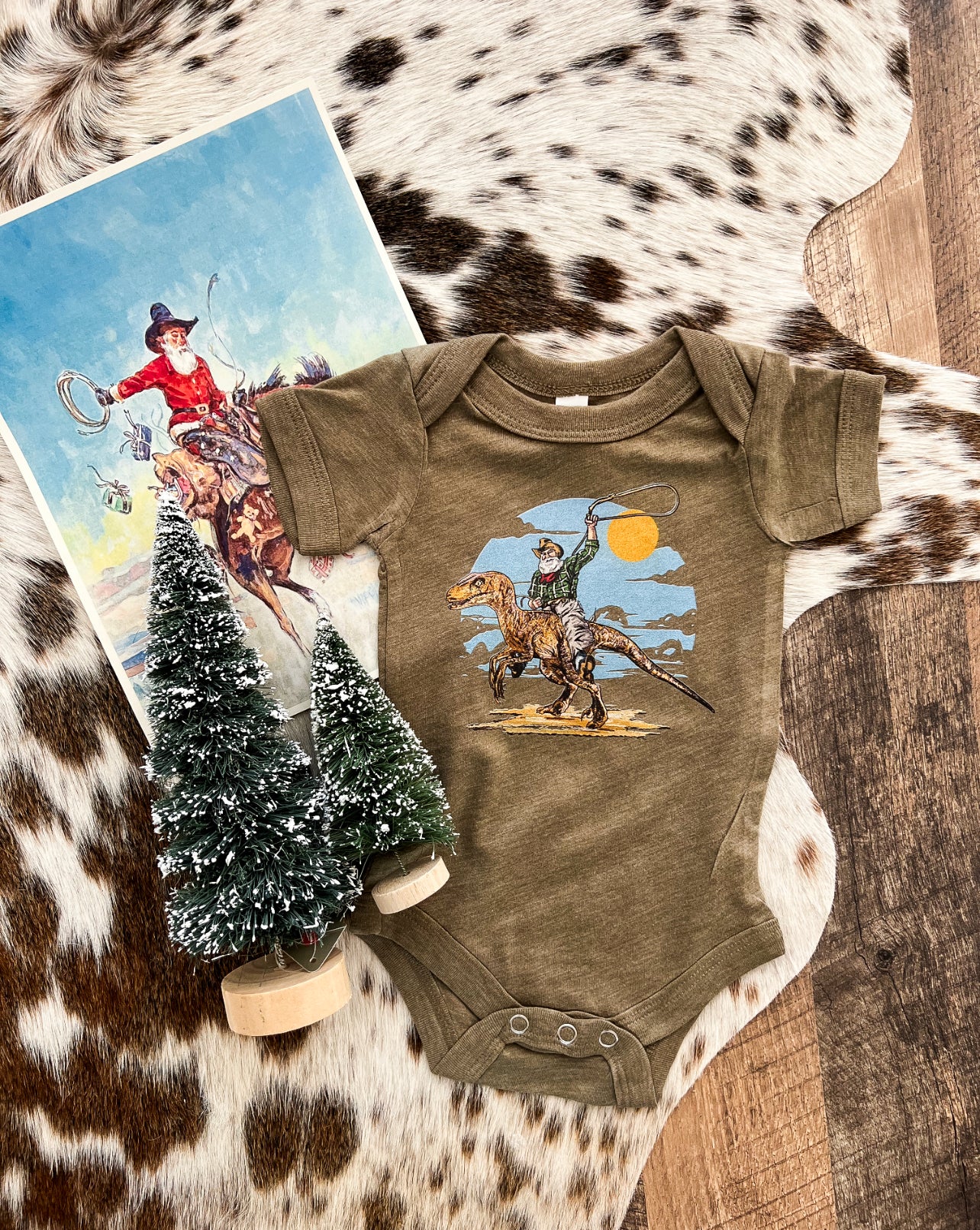 Dinosaur Cowboy Christmas Design (Onesie/Youth Tee)
