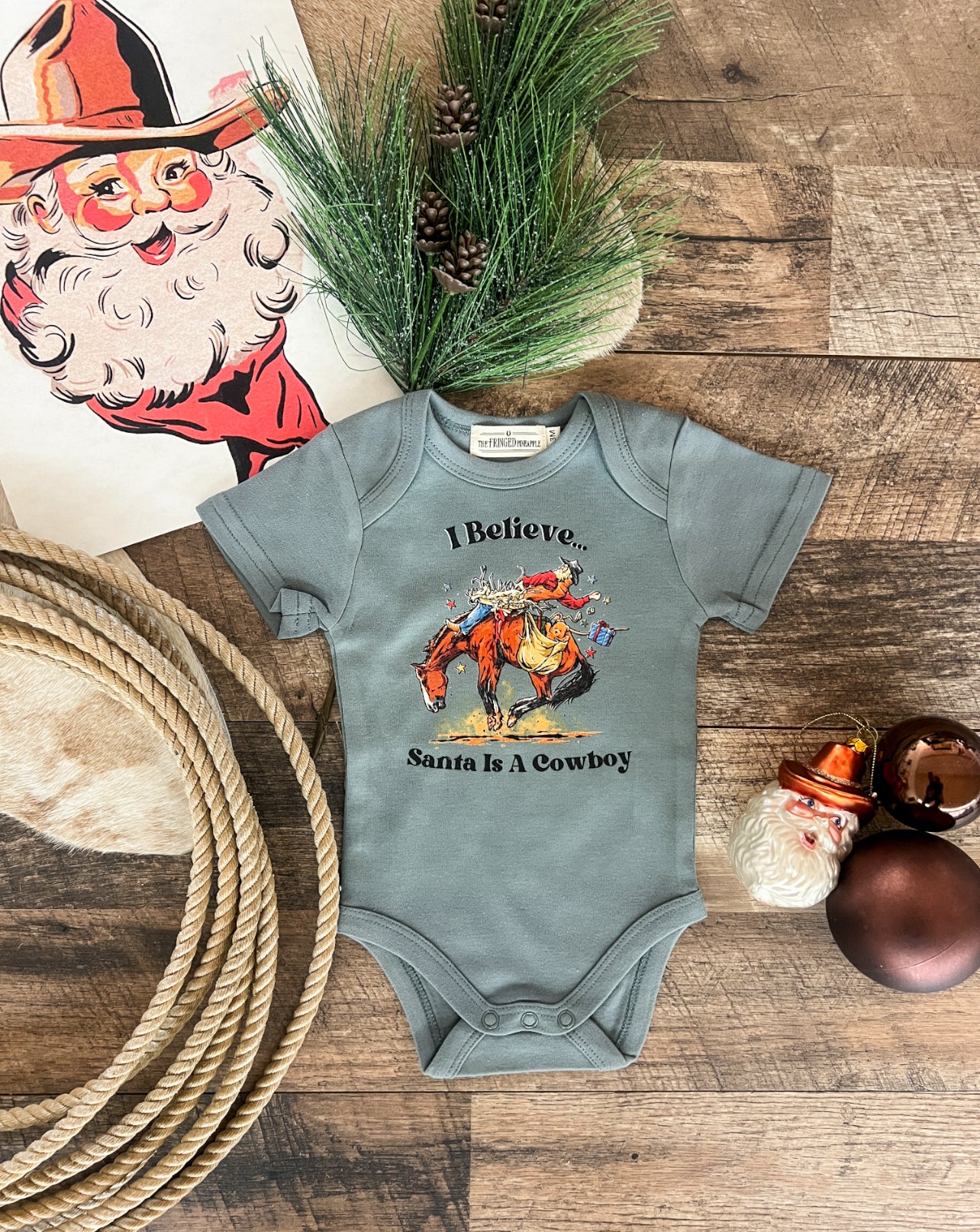 I Believe Santa Is a Cowboy Onesie & Tee (Green)