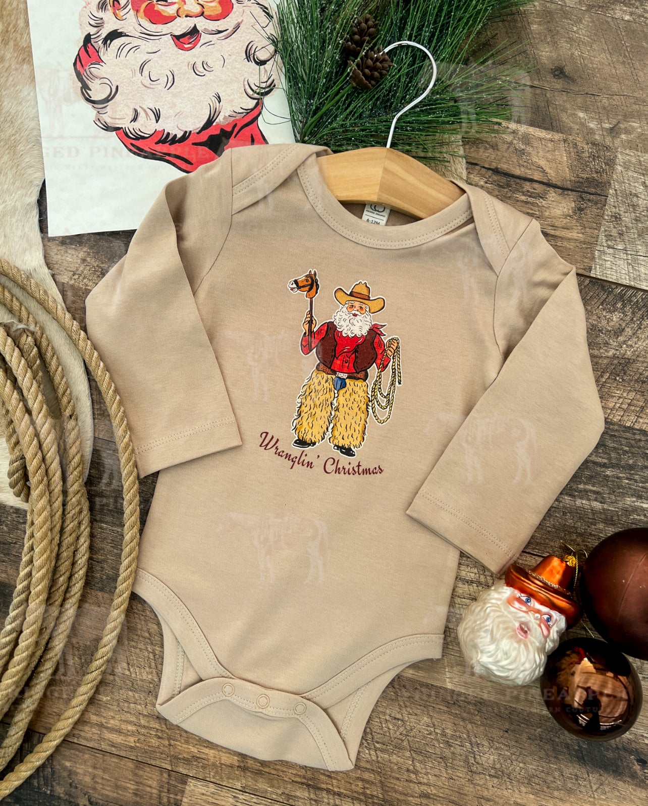 Wranglin Christmas Santa Design (l/s Onesie/Tee)(Clay)