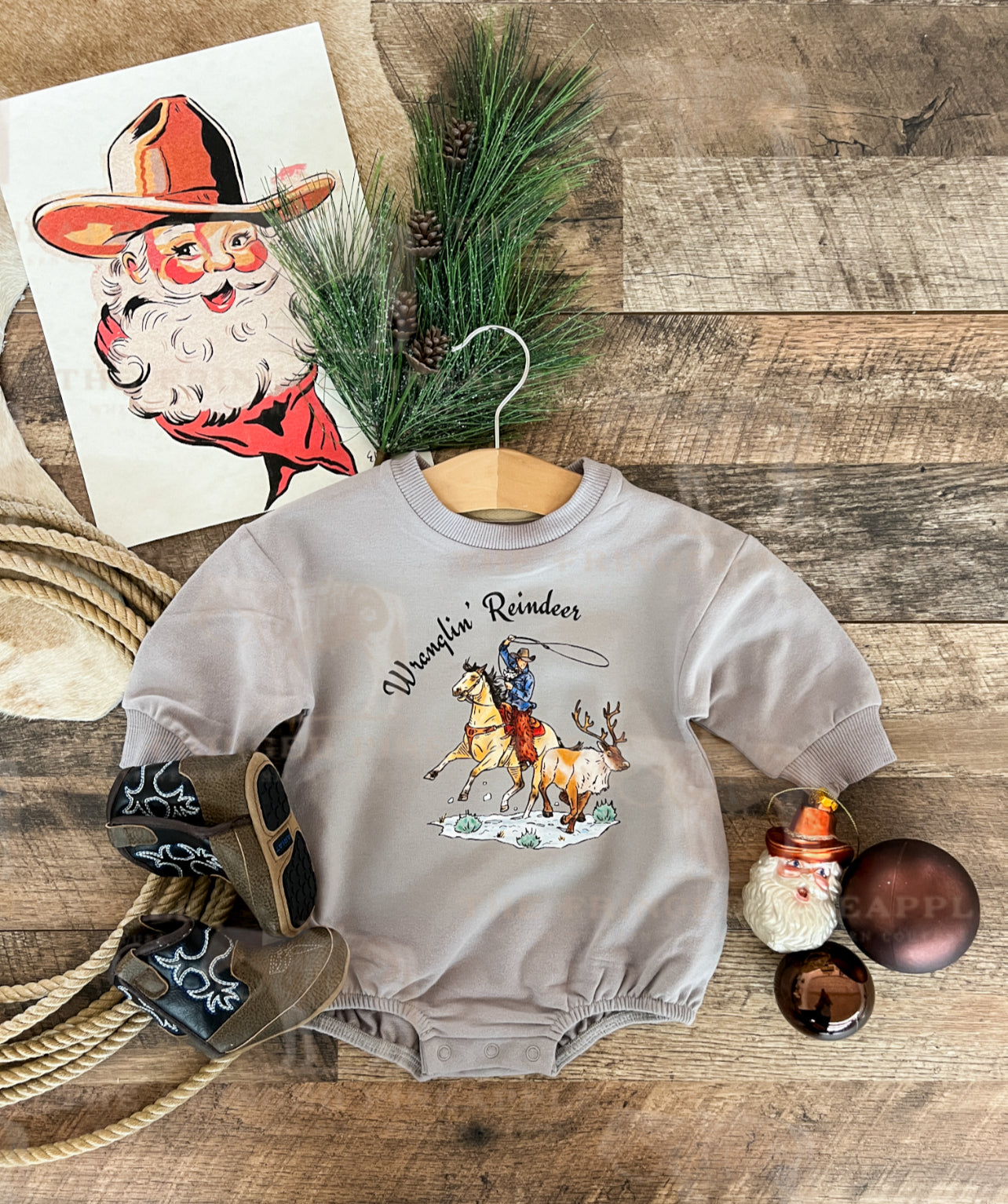 Cody Wranglin’ Reindeer Christmas Bubble Romper (Grey)