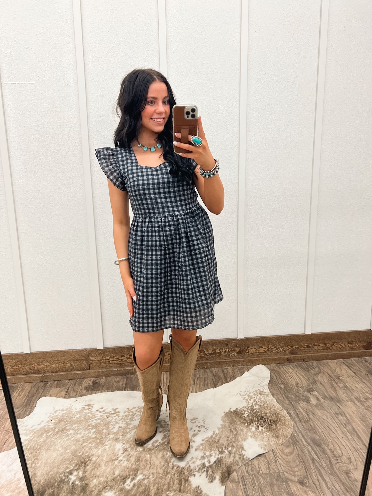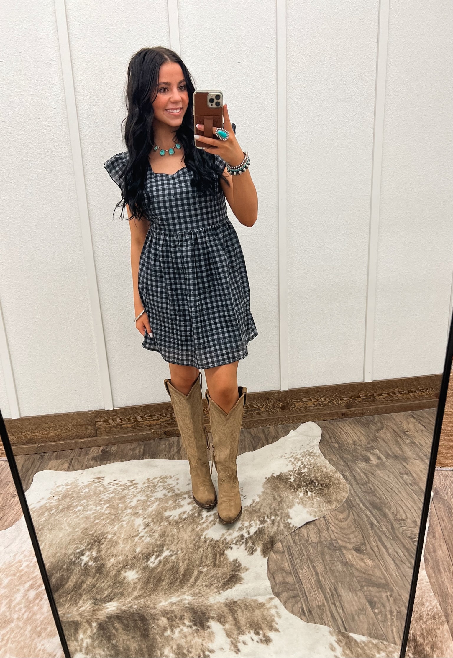 Saddle up and make a statement with this On The Move Gingham Dress. Its square neck and convenient pockets make it perfect for a day on the ranch or a night on the town. With its classic gingham print and mustang print, you'll be on the move in style wherever your adventures take you.